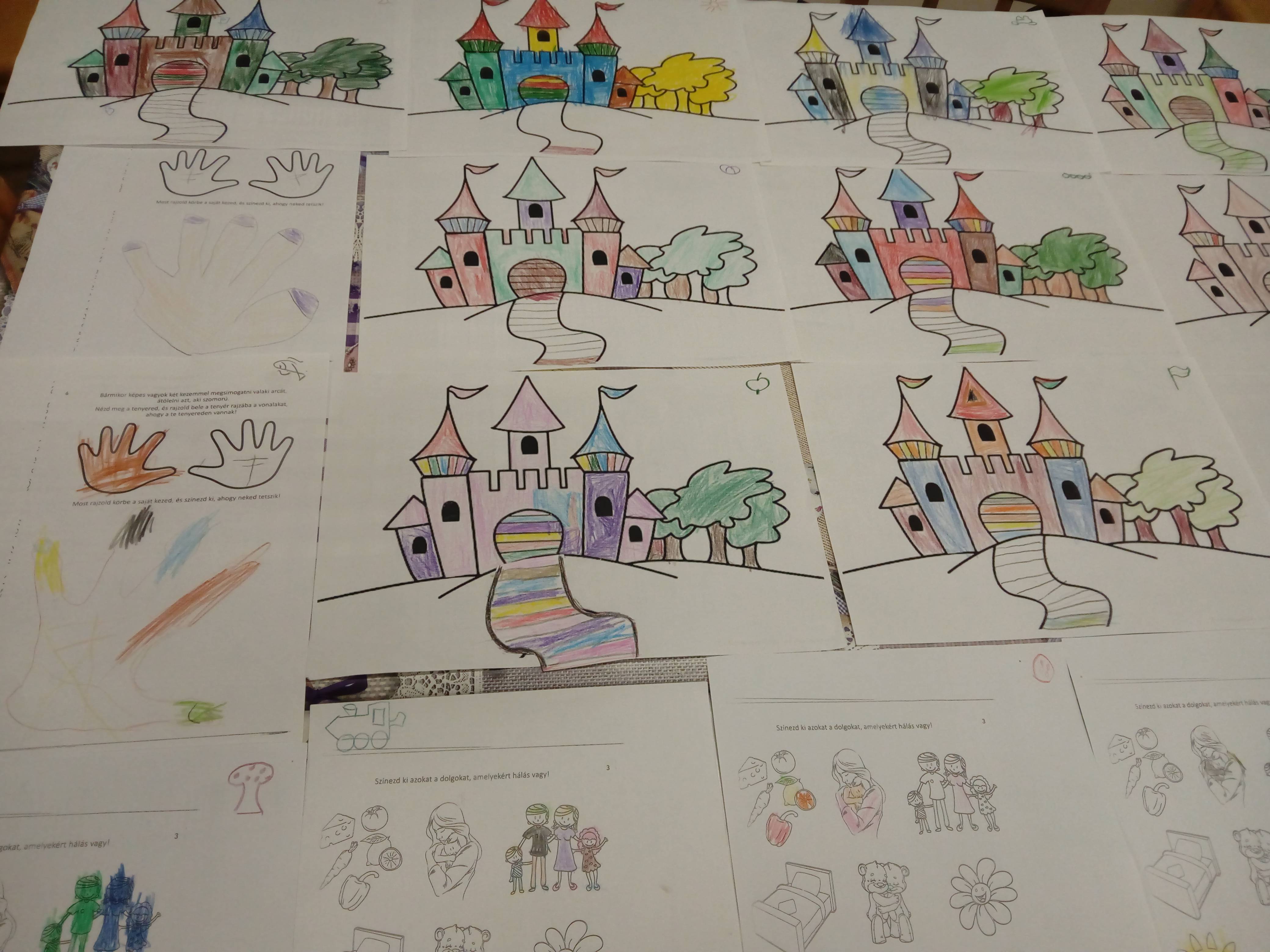 A nagycsoport óvodásai három csoportból tevődnek össze, nagyrészt évismétlők az óvodában. Minden új ismeretet örömmel, és érdeklődéssel fogadnak. A foglalkozás felvezetése nagyon tetszett a gyerekeknek. Elképzelték a várat, de lerajzolni nem tudták volna, így a kapott várat színezte ki mindenki. Gyakran mondták naponta, hogy miért hálásak. A hálavirág díszítése, és felragasztása is nagy élményt szerzett nekik a fénykép készítéséről nem is beszélve.