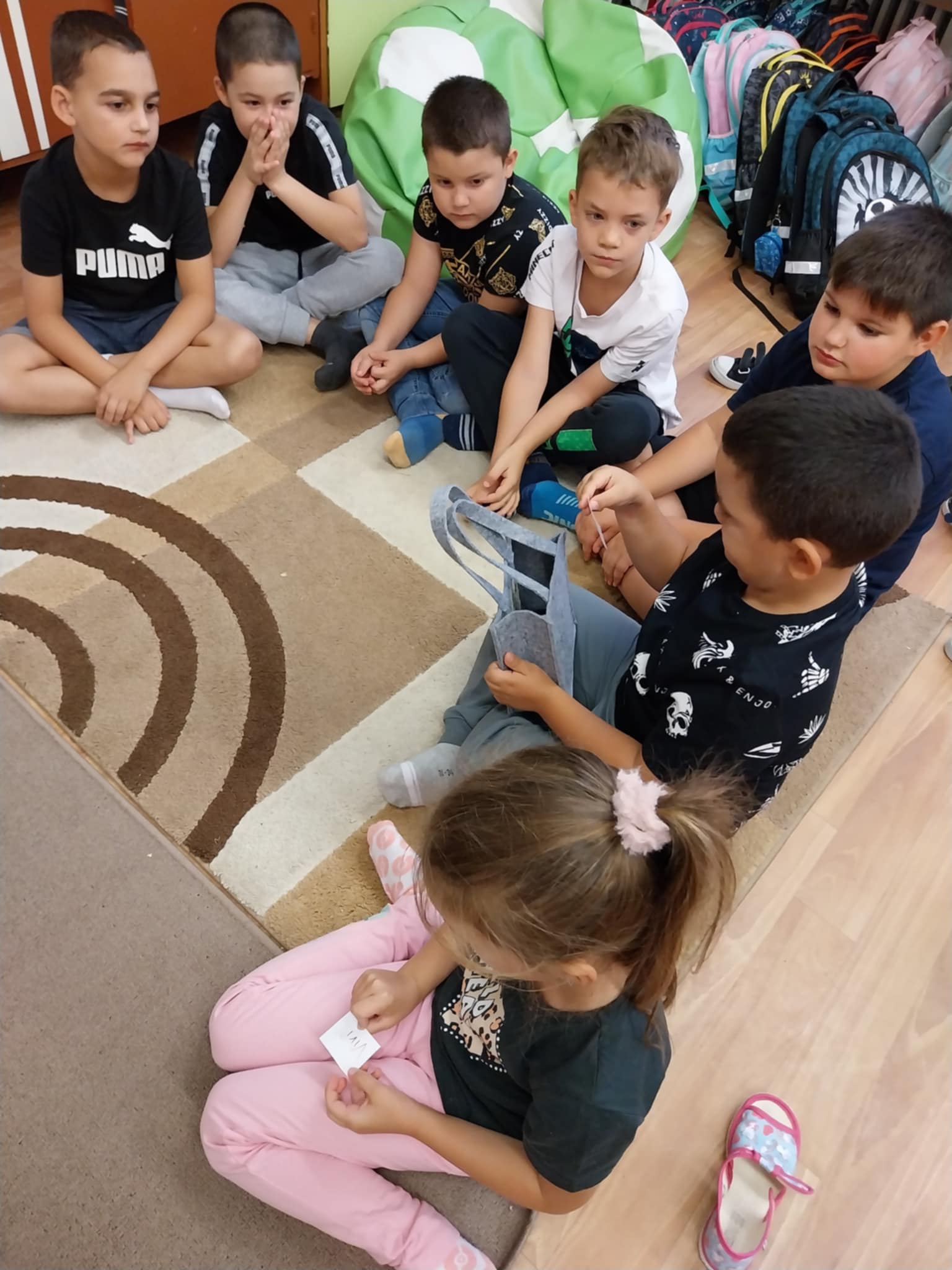 Minden gyermek neve egy zsákba került, majd húztak belőle. Aznap annak a társuknak kedveskedtek valamivel. Hogyan kedveskedjünk? Tigris Tibort körbeadva mindenki elmondta, számára mi számít kedvességnek. Az elő osztálynak az ovisok feladataiból válogattam.