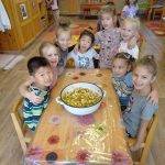 Előzmény: reggeli szabadjátékidőben a vizuális asztalnál nagyalakú alma vagy gomba forma készítés közösen, mozaik ragasztással.