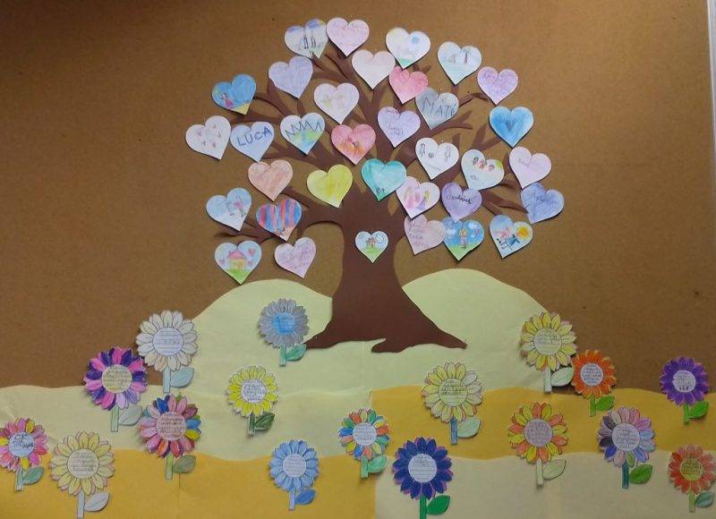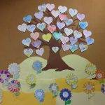 Elkészült a hálakertünk. Rajzlapból kivágott szívecskékre olyan minirajzokat készítettünk, amellyel kifejezhették a gyerekek, miért hálásak. Feltettük őket a hálafára. A hálakert színes virágai pedig szavakkal mondták el, kinek hálásak, miért.