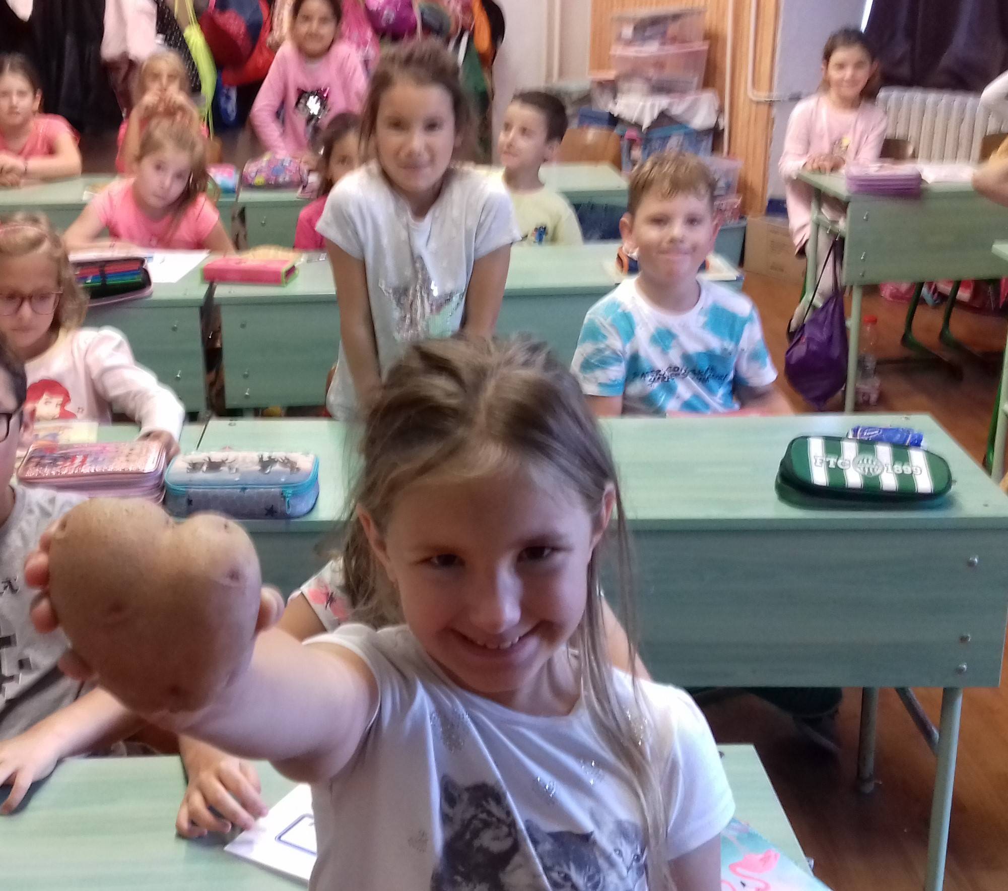 Egy kislány meglepte osztálytársait egy szív alakú krumplival. Büszkén mondogattuk: „Nálunk még a krumplik is szív alakban nőnek!”