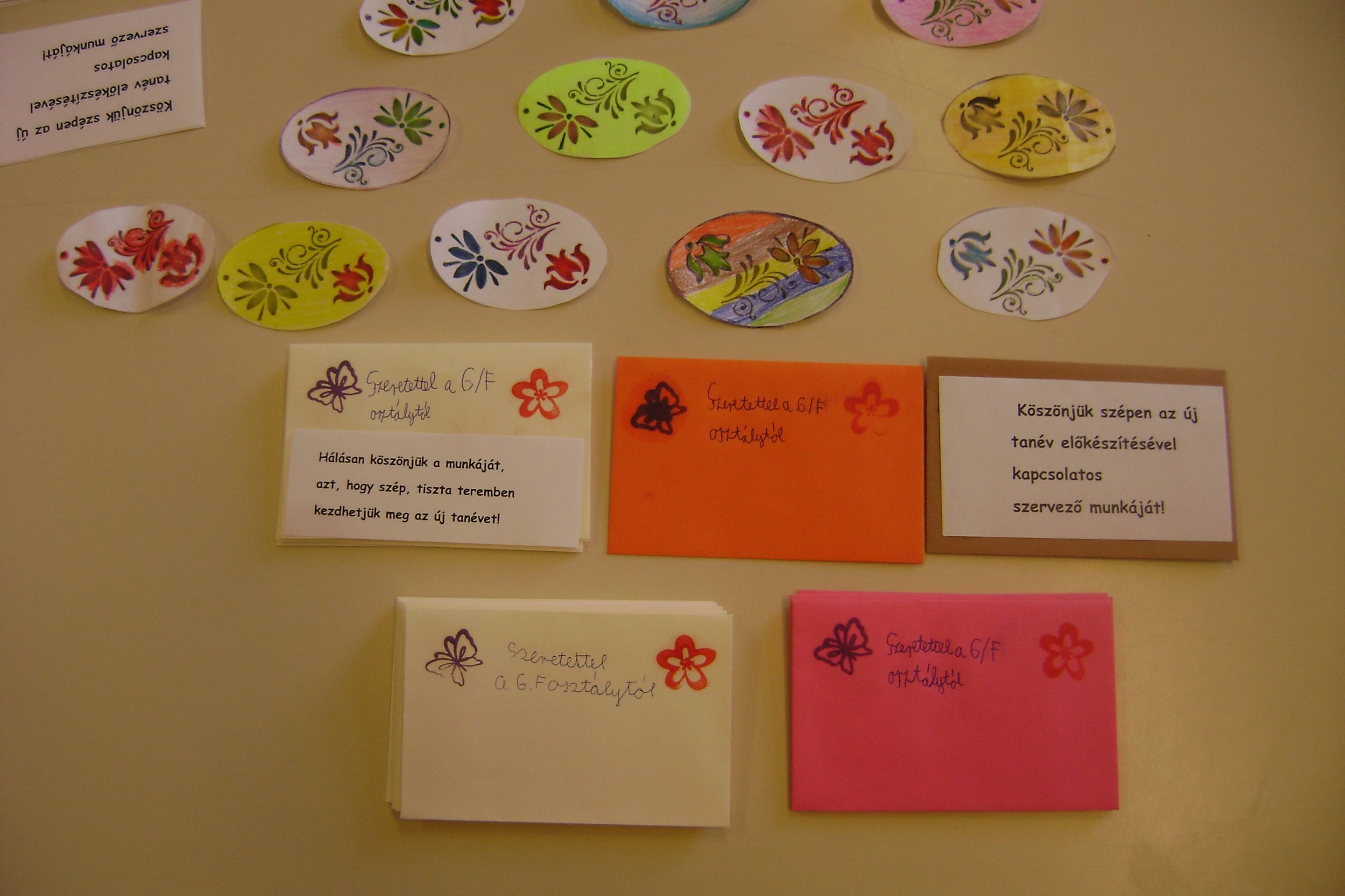Első lépésként igyekeztünk sorra venni, hogy kiknek lehetünk hálásak, kiknek köszönhetjük meg a munkáját az iskolánkban. Ennek apropójaként „Hála üzeneteket” írtunk és kis meglepetésként a borítékokba színeztünk is az osztállyal. Köszönetet mondtunk Kiss Attila Igazgató Úrnak, Konkolyné Tóth Györgyi és Hajdúné Tyukász Zsuzsanna igazgató-helyetteseknek, Túri-Kis Mariann titkárnőnek és Bíró-Szabó Ágnes könyvtárosnak az éves előkészítő munkájukért, hiszen a szeptemberi iskolakezdést nagyon sok háttérmunka előzi meg. Ebben a hónapban (is) hálásak lehettünk az iskolánkban dolgozó takarítónőknek, technikai és gazdasági irodán dolgozóknak azért, hogy tiszta, szép és jól felszerelt iskolai termekben kezdhettük meg a tanévünket.
