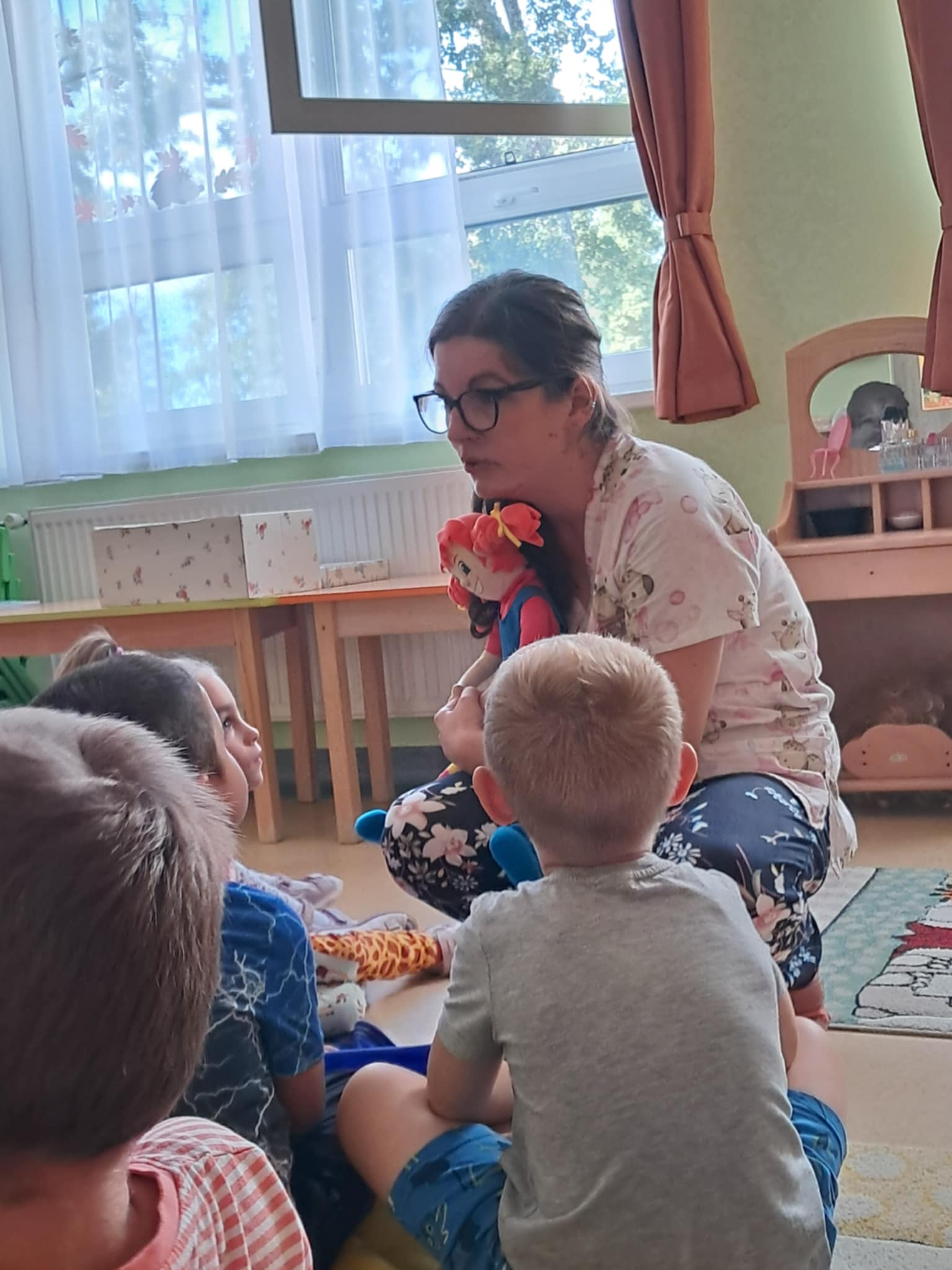 Felpattantunk ismét a léghajónkra és egy kis játék keretein belül hazaröppentünk a nagycsoportba. Boldog Dóra mindenkitől elbúcsúzott és a gyerekek kérték őt, hogy legközelebb is jöjjön el hozzájuk.