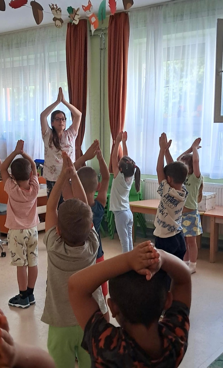Foglalkozásomat a szokásos lelki megérkezéssel kezdtem. Csendes relax zenével, megnyugvással, melyet aztán Napimádással és a Kitárom a világom gyakorlattal folytattunk. Végezetül még zenére leültünk a padlóra és átöleltük magunkat karjainkkal, kicsit elringatva így saját magunkat.