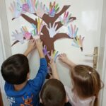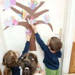 Én már készítettem egy nagy fát, de még teljesen kopasz ahogyan a természetben is, de mivel már sokat beszéltünk az érkező tavaszról szeretném, ha közösen készítenénk rá színes virágokat. Körbe rajzoljuk a kezeteket, kigondolod mi az az öt dolog amiért ma hálás vagy és az öt újadat kiszínezed öt különböző színűre. Mi majd segítünk az újjakra rá írni a színek jelentését, aztán közbevágjuk és mindenki felragasztja a sajátját a fára ahová csak szeretné. Az elkészült színes tavaszi hálafánkat elhelyezzük a csoportunkba, hogy minden nap megcsodálhassuk.
