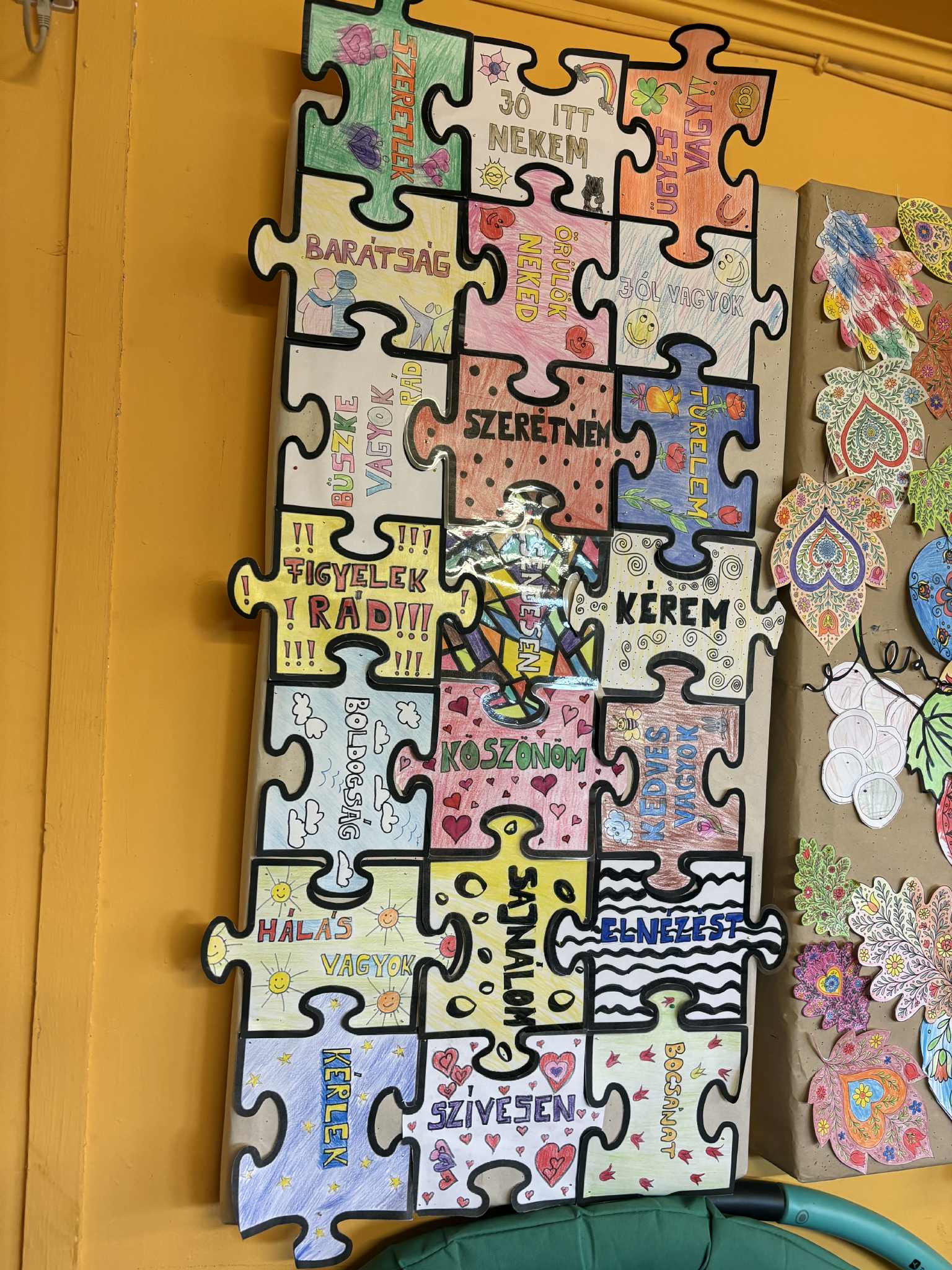 Önszorgalomból létrehoztunk egy szabályaink falát is. Ennek alapját puzzle formák adták, amelyeken olyan szavak és egyszerű mondatok kaptak helyet, amelyek segítik, hogy mindenki jól érezze magát a közösségben. A szabályok megfogalmazásánál felhasználtuk a tavalyi év tapasztalatait is, így a tanulók számára ismerős, biztonságot adó kereteket tudtunk kialakítani.