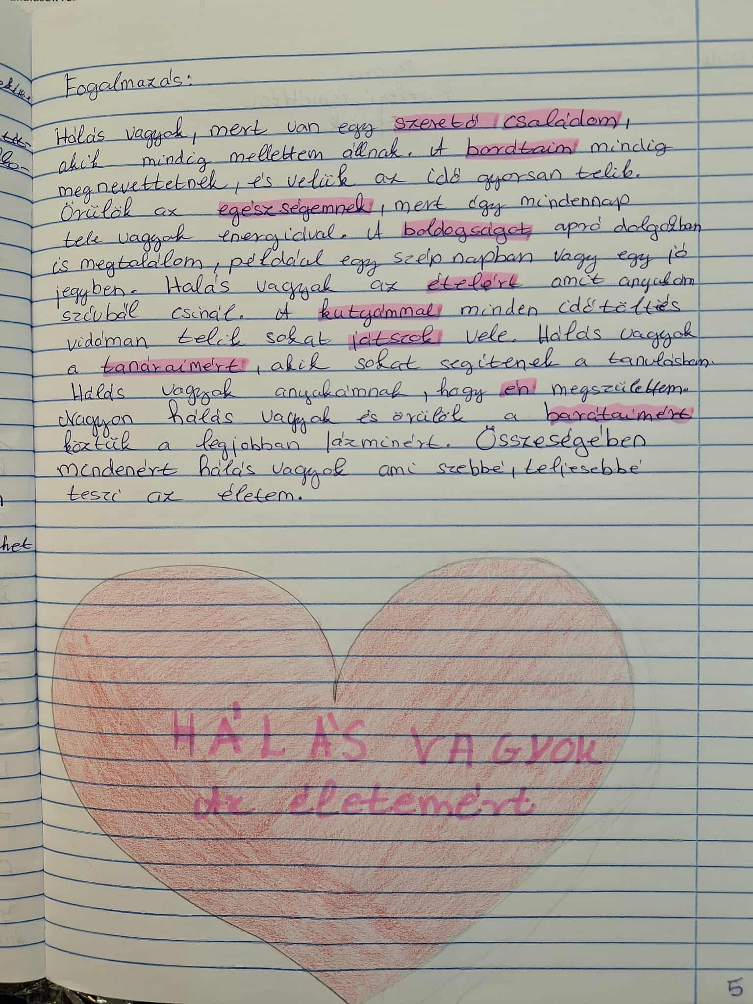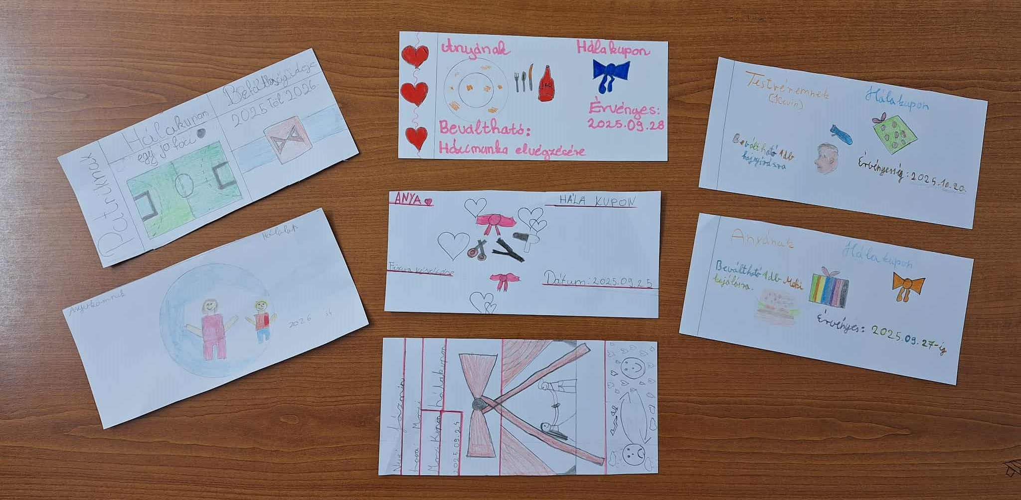 Az első hónapban -a hála témájának feldolgozásánál- igyekeztem élménydús, rendhagyó órákat tartani, és ez sikerült is! Több napon keresztül foglalkoztunk a témával, ami beépült a tananyagba is, és mesterprogramom részeként a tanmenetekben is szerepel: irodalom órákon fogalmazást írtak a gyerkőcök és kódfejtőket készítettek, nyelvtan órákon a gyakorló feladatokat a hála témakörében végeztük, rajzórán teremdekorációt készítettünk „Hálafa” megalkotásával, etika órán pedig „Hálakuponokat” gyártottunk a szeretteinknek.