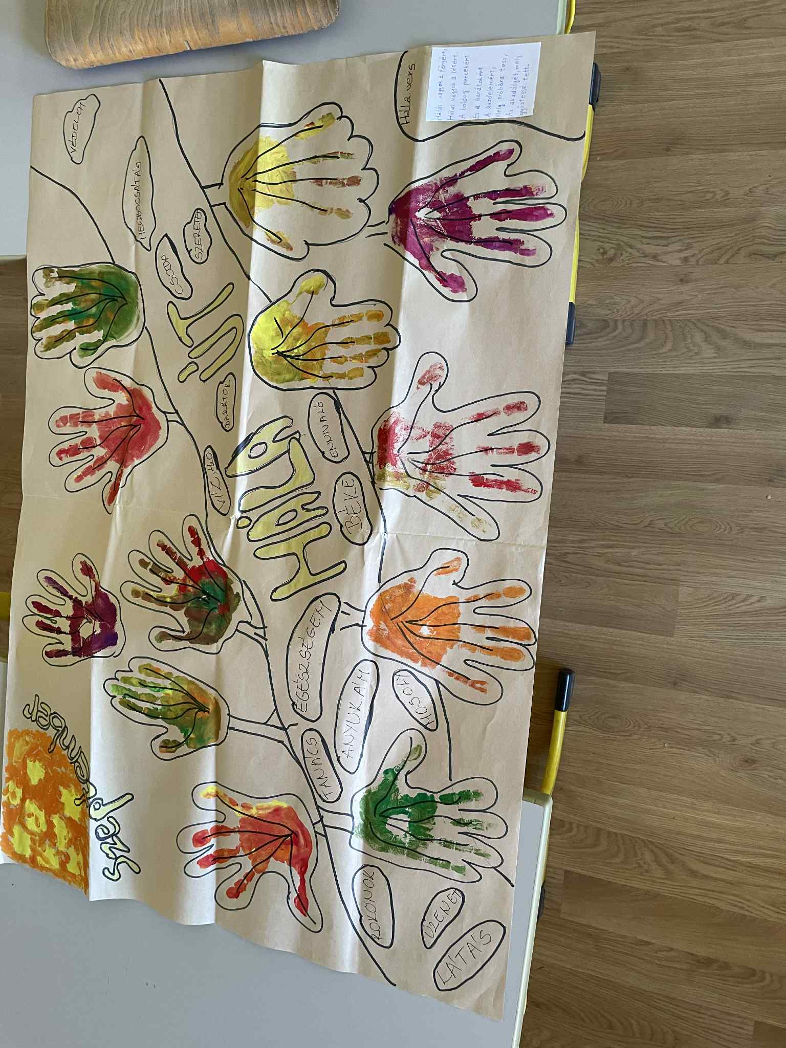 Az osztály Hála utat készített, amelyen a kövek azok, amikért hálásak lehetünk a mindennapjainkban. Az út menti növényzetet a gyerekek kézlenyomatai alkotják őszi színekben.