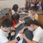 Az együttműködés fontos ebben a korosztályban, párban rajzoltak házikót, fát és egy kutyát. Érdekes volt látni, hogy érvényesült itt is a domináns fél, aki máskor, más helyzetben irányít itt is ő volt az, aki fogta a ceruzát és rajzolt, párja engedelmesen pihentette a ceruzán a kezét. A munka végén megbeszéltük az átélt eseményeket, volt, aki azt mondta, hogy hagyta a másikat, hogy ő rajzoljon.