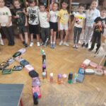 Óra végén a Hálaerősség dalára rajzoltunk. Mindenki leírta a rajzlapra a KÖSZÖNÖM szót, kiszínezték, dekorálták és a szó köré írták azoknak a nevét, akinek hálásak. Az így elkészített rajzokból hálafalat készítettünk.