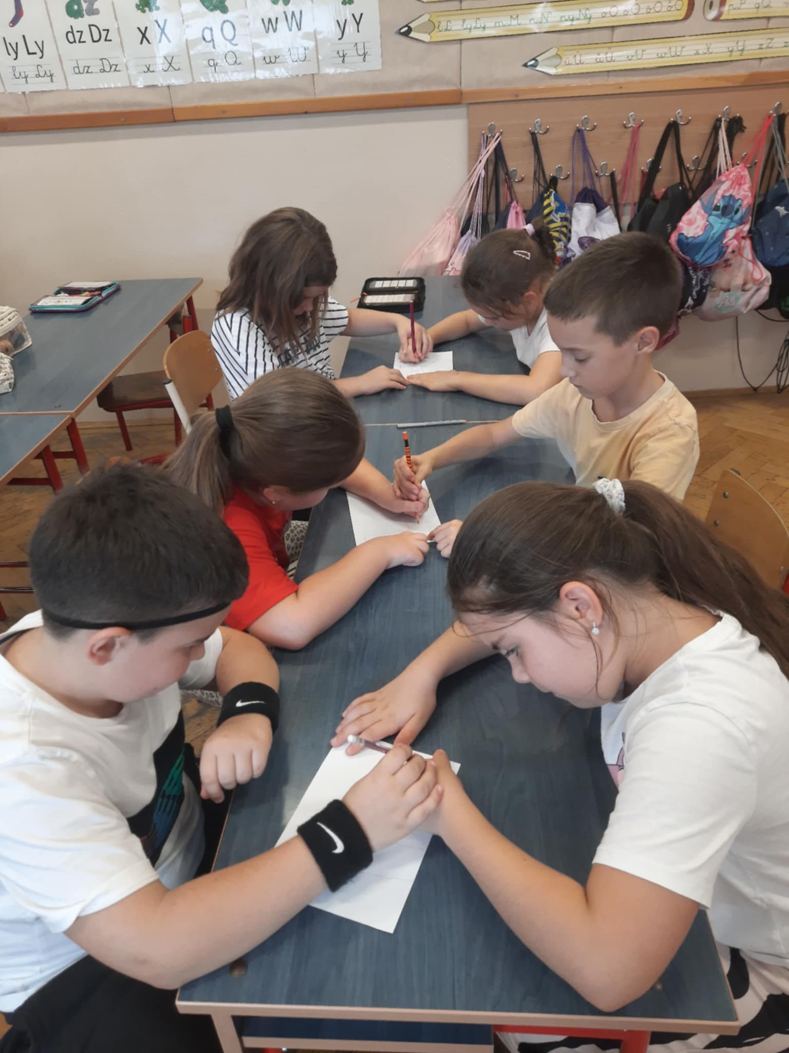 Az együttműködés fontos ebben a korosztályban, párban rajzoltak házikót, fát és egy kutyát. Érdekes volt látni, hogy érvényesült itt is a domináns fél, aki máskor, más helyzetben irányít itt is ő volt az, aki fogta a ceruzát és rajzolt, párja engedelmesen pihentette a ceruzán a kezét. A munka végén megbeszéltük az átélt eseményeket, volt, aki azt mondta, hogy hagyta a másikat, hogy ő rajzoljon.
