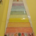 Az első boldogságóra foglalkozást a Szivárvány csoport 3–4 éves gyermekeinek tartottam, a hála témakörének bevezetésével. Már a foglalkozás előtt igyekeztem különleges hangulatot teremteni: bevittem a csoportszobába a „Boldogságvárat”, egy nagy, színes rajzot, amelynek lépcsőin hónapról hónapra haladunk majd felfelé az egyes témák mentén. A gyerekek azonnal észrevették az újdonságot, köré gyűltek, kérdezgettek, és láthatóan izgatottá váltak. Nagy örömmel fogadták, amikor elmondtam nekik, hogy most az első lépcsőfokra lépünk együtt.