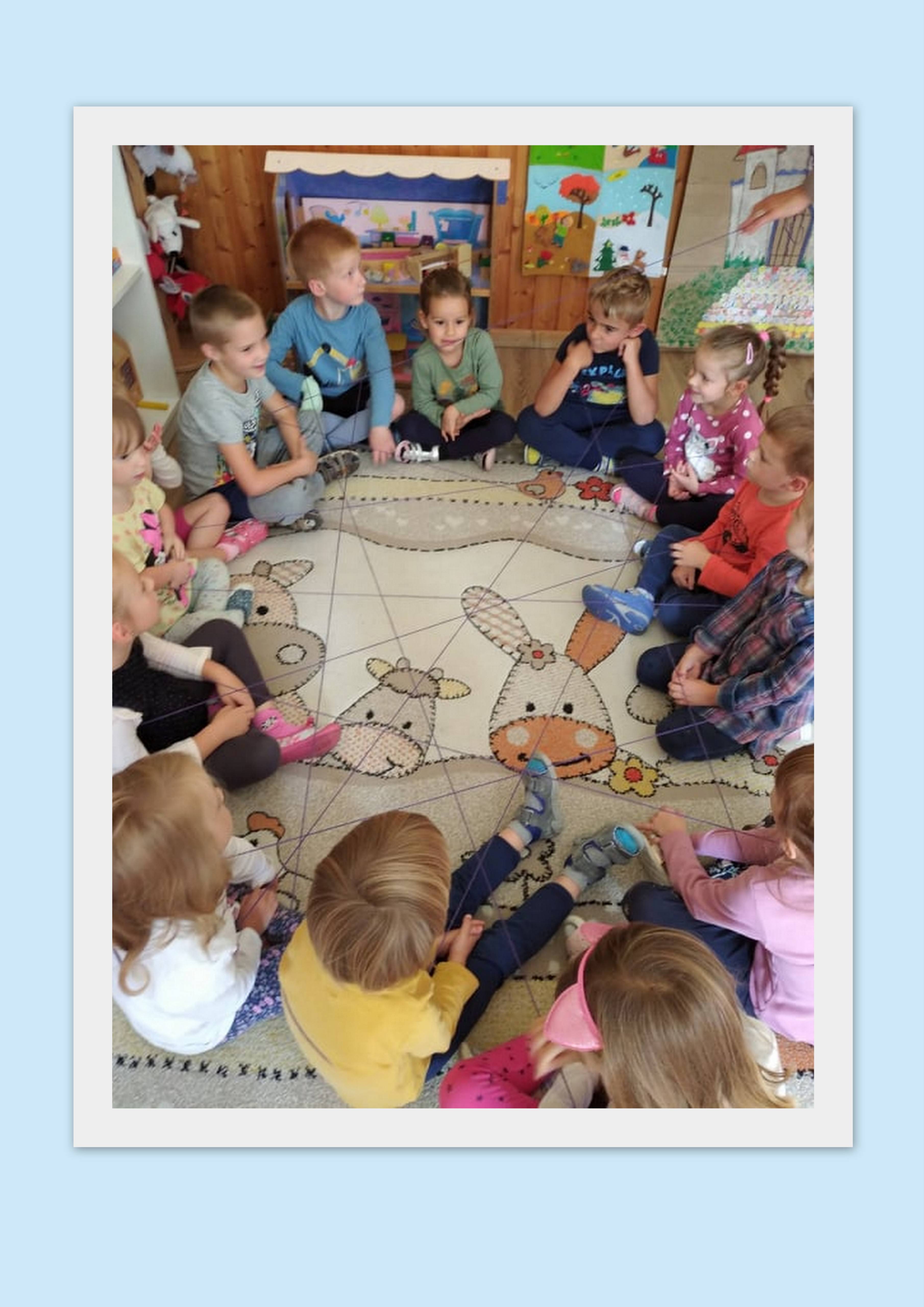 A Hála téma feldolgozását a „Hogyan sző a hálapók?” játékkal kezdtük. Eleinte néhány kisgyermek idegenkedett a „pókhálótól”, aztán a többiek példáján felbátorodva örömmel kapcsolódtak be a játékba. Egyre bátrabban meséltek élményeikről és hagyták, hogy a pók körülfonja őket. A játék végén visszafejtettük a háló fonalát, így mindenki kiszabadult. A feladat jól segítette a kapcsolatalakítást, a bizalomépítést, az önbizalom fejlesztését, vagy éppen a póktól, a pókháló érintésétől való félelem csökkentését.