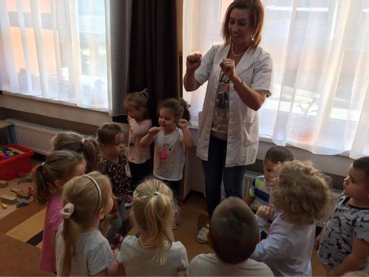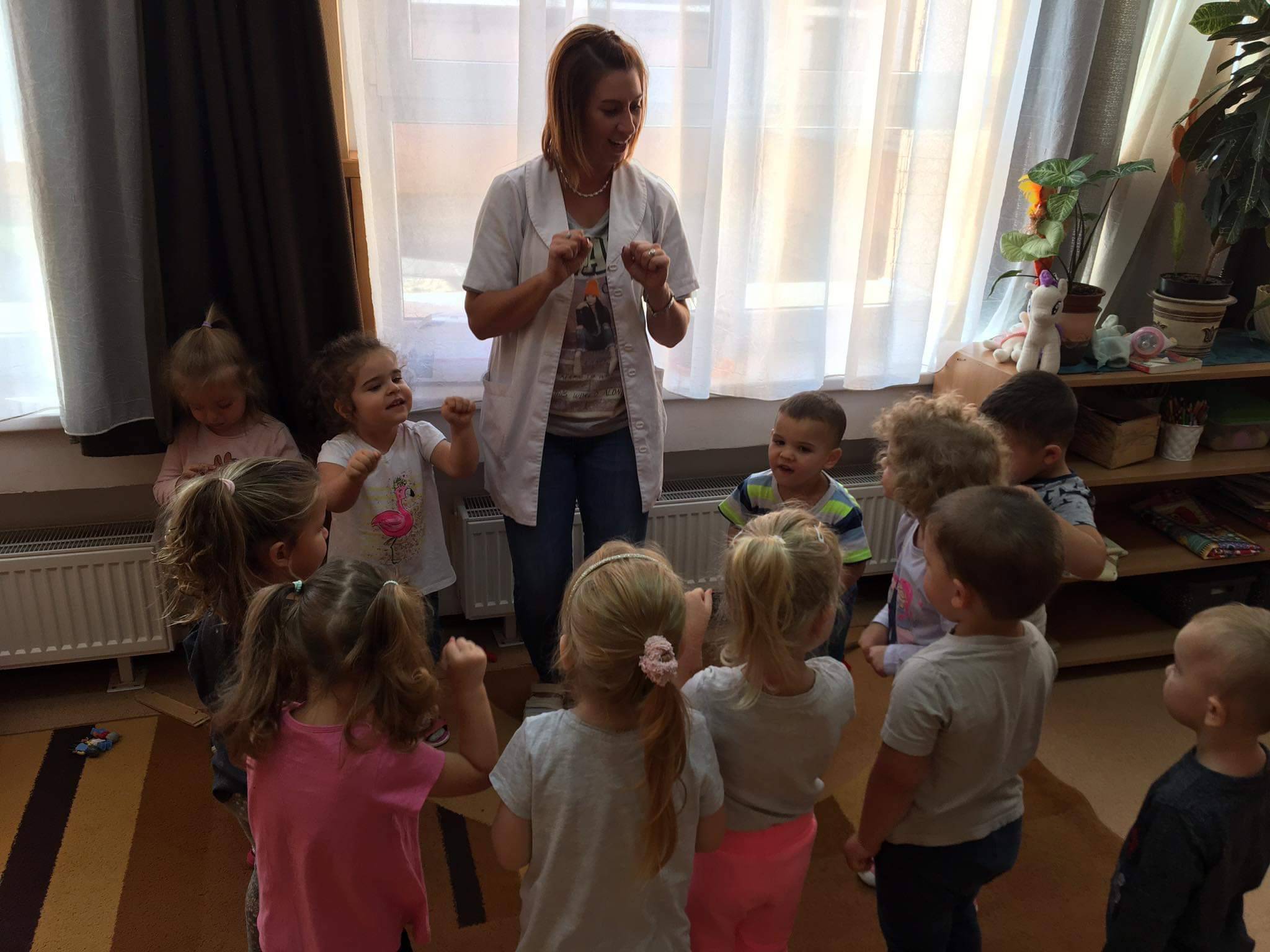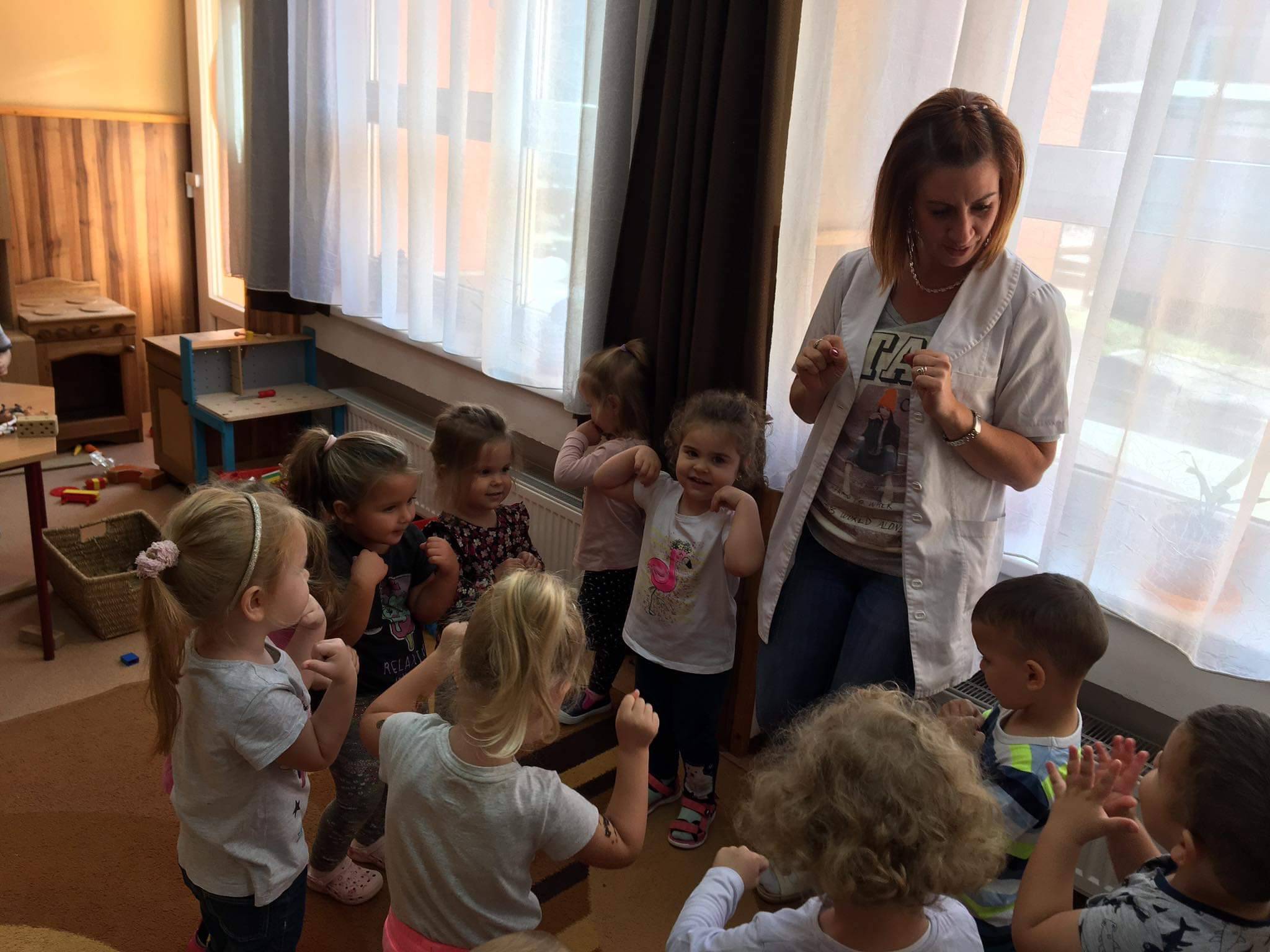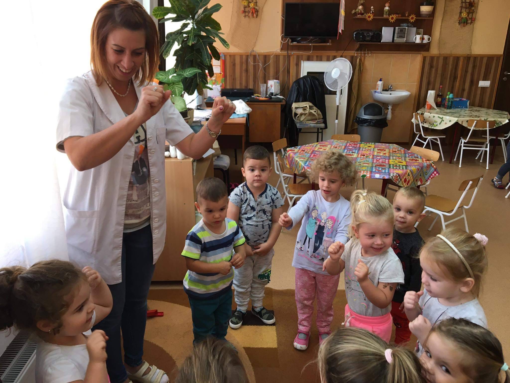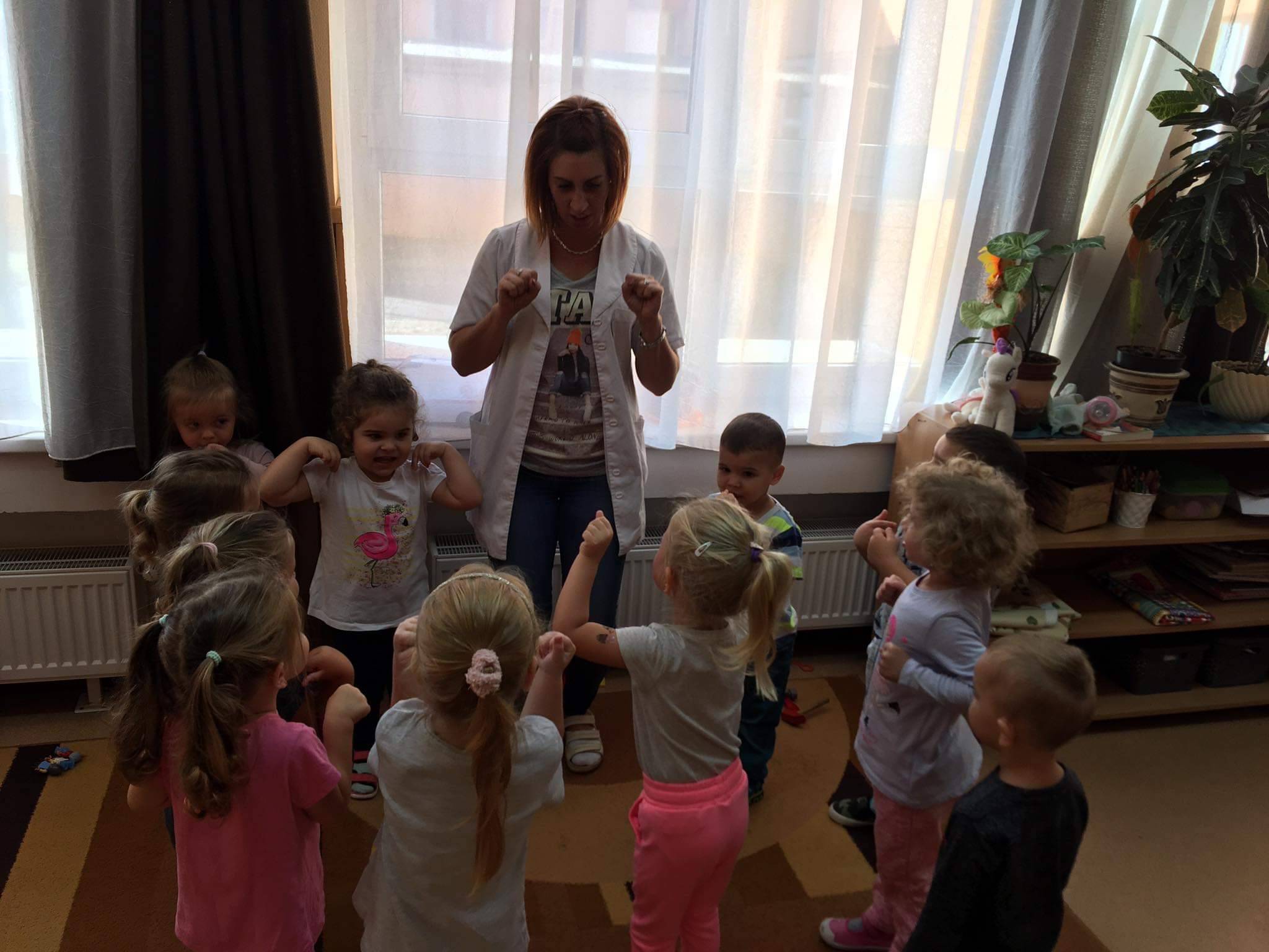 A Napraforgó kiscsoportban a befogadási időben örömmel jöttek a gyerekek körém,miközben mondókáztunk. Rövid dallamokat énekeltem nekik,az őszi aktualitásnak megfelelően.