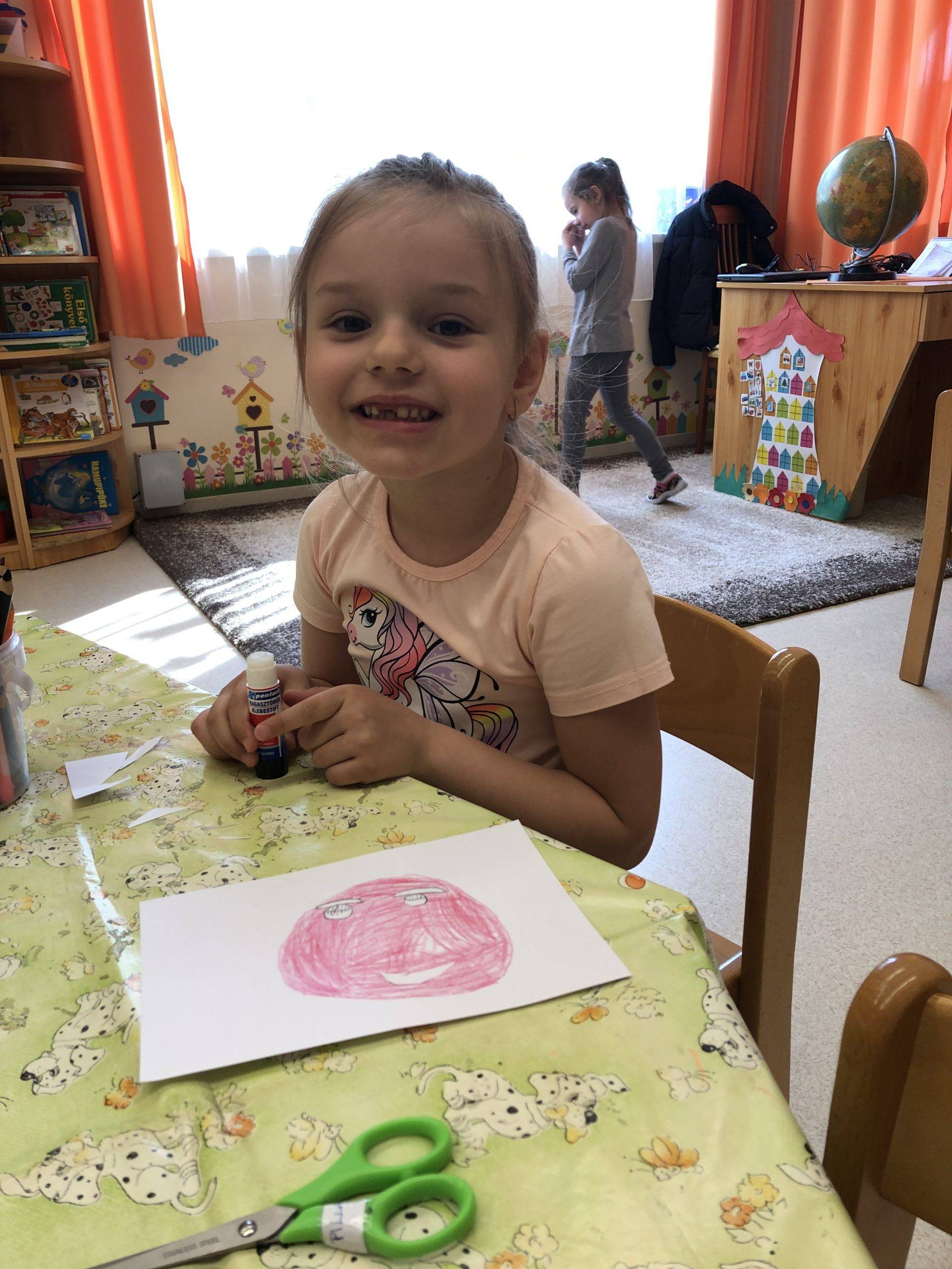 A hónap témáját, a megbocsátást relaxációs gyakorlatokkal kezdtük, ilyen volt A haragom kifújom… című játék. A gyerekeknek tetszett ez a fajta relaxáció, így több, mint háromszor megismételtük a gyakorlatot. Vizuális tevékenységként a Gyurmaarc című játékot választottam, csak kicsit másképpen, mivel épp nem volt gyurmánk. A gyerekek saját maguknak vágtak ki fejet, szájat, szemöldököt, szemet. Volt aki vágott hozzá orrot is, volt aki anélkül ábrázolta. Többféle érzelmeket alkottak meg a gyerekek, ezeket a saját arcukon is eljátszották mimikával. Majd ami a leginkább tetszett nekik, azt a végén oda is ragaszthatták a kivágott fejre. Zárókörként a gyerekekkel leültünk a szőnyegre és megbeszéltük, hogy kit ki bántott meg és hogyan, hogyan lehet megbocsátani egymásnak. A gyerekek csoporton belül is beszéltek a sérelmeikről, megbocsátásokról, illetve az otthoni, szüleikkel való békülésről is szívesen meséltek.
