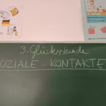A novemberi boldogságóránk témája a „Társas kapcsolatok ápolása” volt. Az órát most is egy szórejtvénnyel kezdtük, hiszen a tanulóknak ki kellett találniuk három kivetített kép segítségével a hónap témáját németül („Soziale Kontakte”). Egy kis segítséggel sikerült is megfejteniük a rejtvényt.