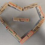 Az órát egy kreatív feladattal zártuk. Mindenki választott a feladatlapról egy pozitív belső tulajdonságot, amit németül ráírt egy csipeszre (pl.: Du bist warmherzig/kreativ/liebevoll…). Azt kértem tőlük, hogy az elkészült csipeszekből alkossanak egy formát. Végül közös megegyezéssel egy szívformát alakítottak ki. A csipeszt óra végén hazavitték, és megbeszéltük, hogy egy olyan számukra kedves személynek ajándékozzák, akire illik a csipeszre felírt tulajdonság.