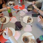 A hetedik boldogságóránkat március 20-án tartottuk a Boldogság Világnapján. A helyszín most kivételesen nem az iskola volt, hanem egy közeli cukrászda. Egy finom süti elfogyasztása mellett a tanulók szívecskékre írtak kedves üzeneteket. Az iskolába visszavezető úton a megírt szívecskéket az utcán és a környékbeli üzletekben szétosztogatták, amivel nagy örömet szereztek az embereknek.