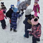 Igazi örömet okozott számunkra a közös hóember készítés is! Vidám gyerekhangok, nevetés, közös éneklés, mondókázás közben el is készült a hóember.
