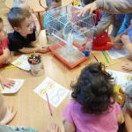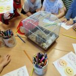 Örömmel játszottam le újra a dalt, amire a mozgásos koreográfiát már több gyermek is ismételte. Nagyon szeretnek táncolni. Még nagyon kicsik és mozgékonyak, szeleburdi kiscsillagok a kiscsoportosaink. Egy kicsit kimelegedtünk és hogy pihenjünk, leültünk a szőnyegre. Ekkor próbáltam a gyermekeket rávezetni arra, hogy milyen is az optimista gyermek. Kinéztünk az ablakon, szépen sütött a nap, a madarakat hallottuk a fákon csicseregni. Ahogy ezt hallgattuk, egyszer csak kopogtak a csoportszoba ajtaján és hoztak be az iskolások két kis állatot, amelyeket csodálattal és örömmel fogadtunk. Nagyon tetszett a gyermekeknek a papagáj és a mókus. Az előző héten az állatokról beszélgettünk. Boldogok voltak a gyerekek, hogy ilyen közelről láthatják és megsimogathatták a kismadarat és a mókust. Nagyon jó volt az idő, ezért ki tudtunk menni az udvari játékokhoz játszani. Szuperül éreztük magunkat! Az ebéd is finom volt és pihenőidőben meséltem el a gyerekeknek a Tódi törpe varázsszemüvege című mesét. Kiszíneztük a varázsszemüveget és az optimizmus jelét is. Egész héten végig vittük a Boldogságórát, így jutott idő másik mesére is. A varázsbonbon mese azért volt érdekes, mert a gyermekeket arra ösztönözte, hogy megkóstolhassák az általam hozott varázsbonbonokat. Tényleg jókedvre derítette a gyermekek többségét és motiválta őket abban, hogy ügyesen összepakoljanak, figyeljenek. A játék, a tánc, a zene, a mozgásos játékok örömforrás számukra.