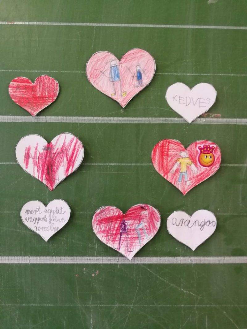 Lerajzoltuk a szívekbe a barátainkat, majd a következő szívekbe, hogy mit szeretünk a társunkban.
