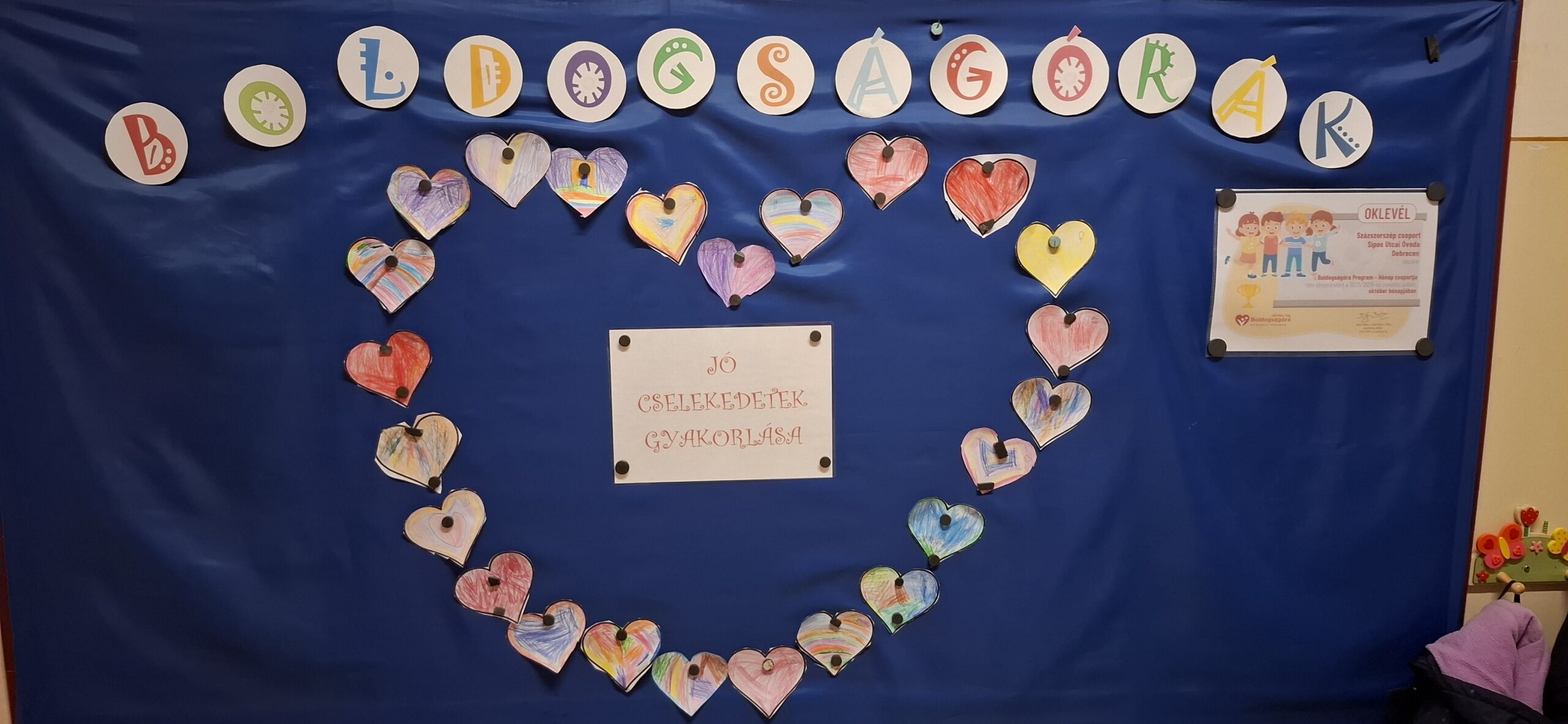 A mai Boldogságórán a gyermekek örömmel és aktívan vettek részt a jó cselekedetek témájára épülő tevékenységekben. A foglalkozás légköre végig nyugodt, elfogadó és biztonságos volt, ami lehetővé tette, hogy a gyerekek felszabadultan kapcsolódjanak egymáshoz, és bátran fejezzék ki érzéseiket.