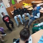 Mozgásos játékként „jóság-láncot” játszottunk: a tanulók körben álltak, és amikor egy-egy jó cselekedet elhangzott, az lépett a kör közepére, akire az adott állítás igaz volt, majd visszalépett a helyére.