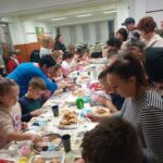 A Boldogságóra Boldogító jó cselekedetek témáját olyan élményekkel dolgoztuk fel, amelyek egyszerre erősítették az empátiát, az összetartozás érzését és a közösséghez tartozást. A foglalkozások során a gyerekek színezhető motívumokon keresztül ismerkedtek meg a jóság mindennapi formáival, miközben természetes módon beszélgettek az odafigyelés és a kedvesség fontosságáról. Az órán beszélgettünk arról, mit jelent számunkra a boldogító jó cselekedet: hogyan tudunk apró tettekkel örömet szerezni másoknak, és hogyan hat ránk, amikor mi magunk teszünk jót. A ráhangolódást a „Ha boldog vagy, mutasd meg mindenkinek” című Bagdi Bella-dal meghallgatása segítette, amely vidám hangulatot teremtett és megnyitotta a gyerekek szívét az együttműködésre. A foglalkozások során jóságláncot készítettünk, amelynek minden láncszeme egy-egy jócselekedetet jelképezett, amire saját gondolatukat írták rá. A közösen elkészült jóságláncot az iskola fájára helyeztük ki, hogy minden arra járót emlékeztessen arra: az apró kedvességek is összekapcsolnak bennünket. A lánc láthatóvá tette a gyerekek jó szándékát, és büszkeséggel töltötte el őket, hogy jóságukkal a tágabb közösségnek is üzenhetnek. Büszkék voltak a gyerekek, hogy az ő munkájukkal díszíthettük fel a fát. A program egyik kiemelt eseménye a szülőkkel közös mézeskalács-díszítés volt, ahol a közös alkotás valódi közösségi élménnyé vált. A gyerekekkel megbeszéltük, hogy az elkészült mézeskalácsok közül egy-egy darabot félreteszünk, és egy kiválasztott személynek adjuk át kedves gondolattal vagy jókívánsággal. Így a díszítés maga is boldogító jó cselekedetté vált.