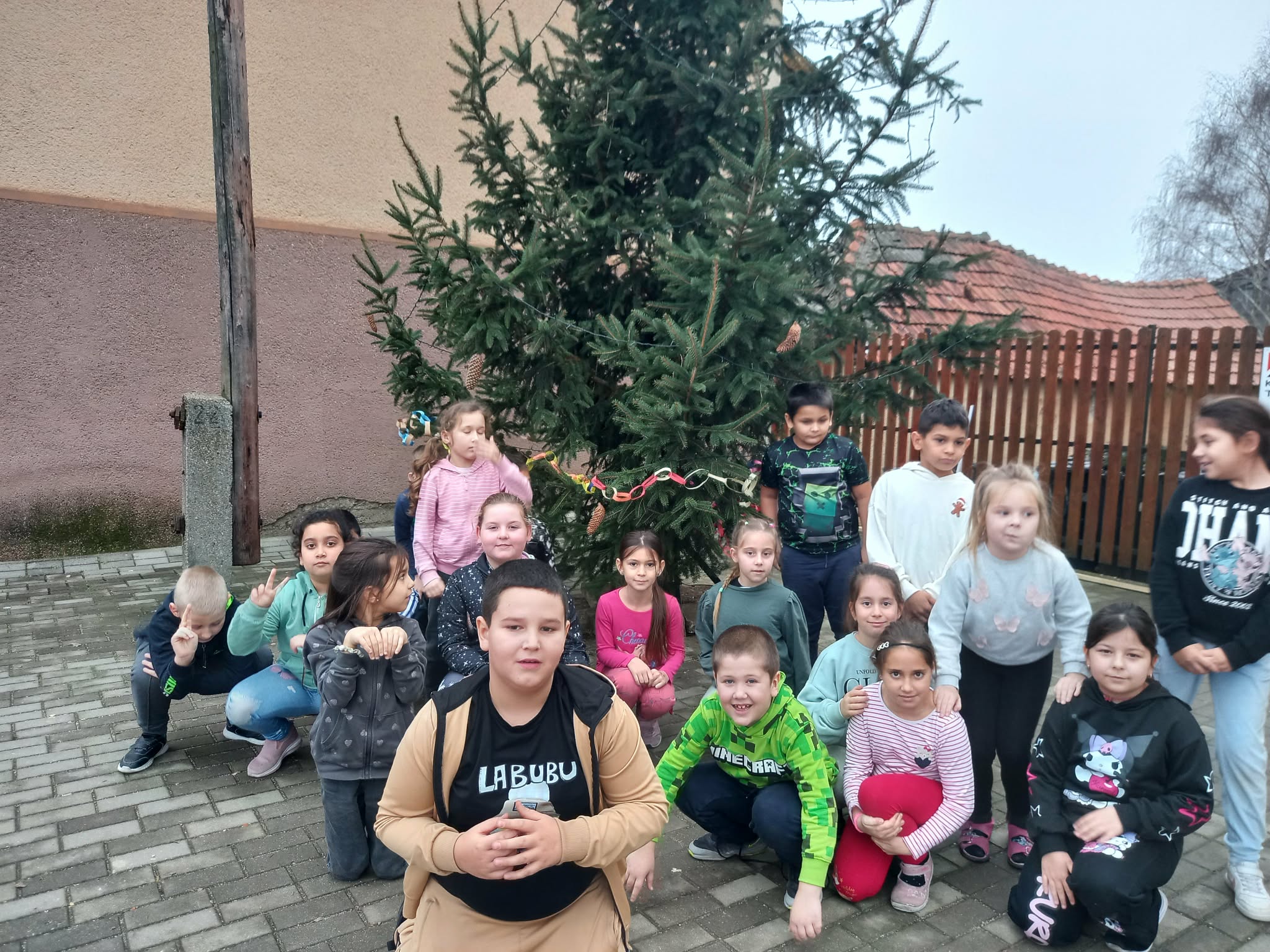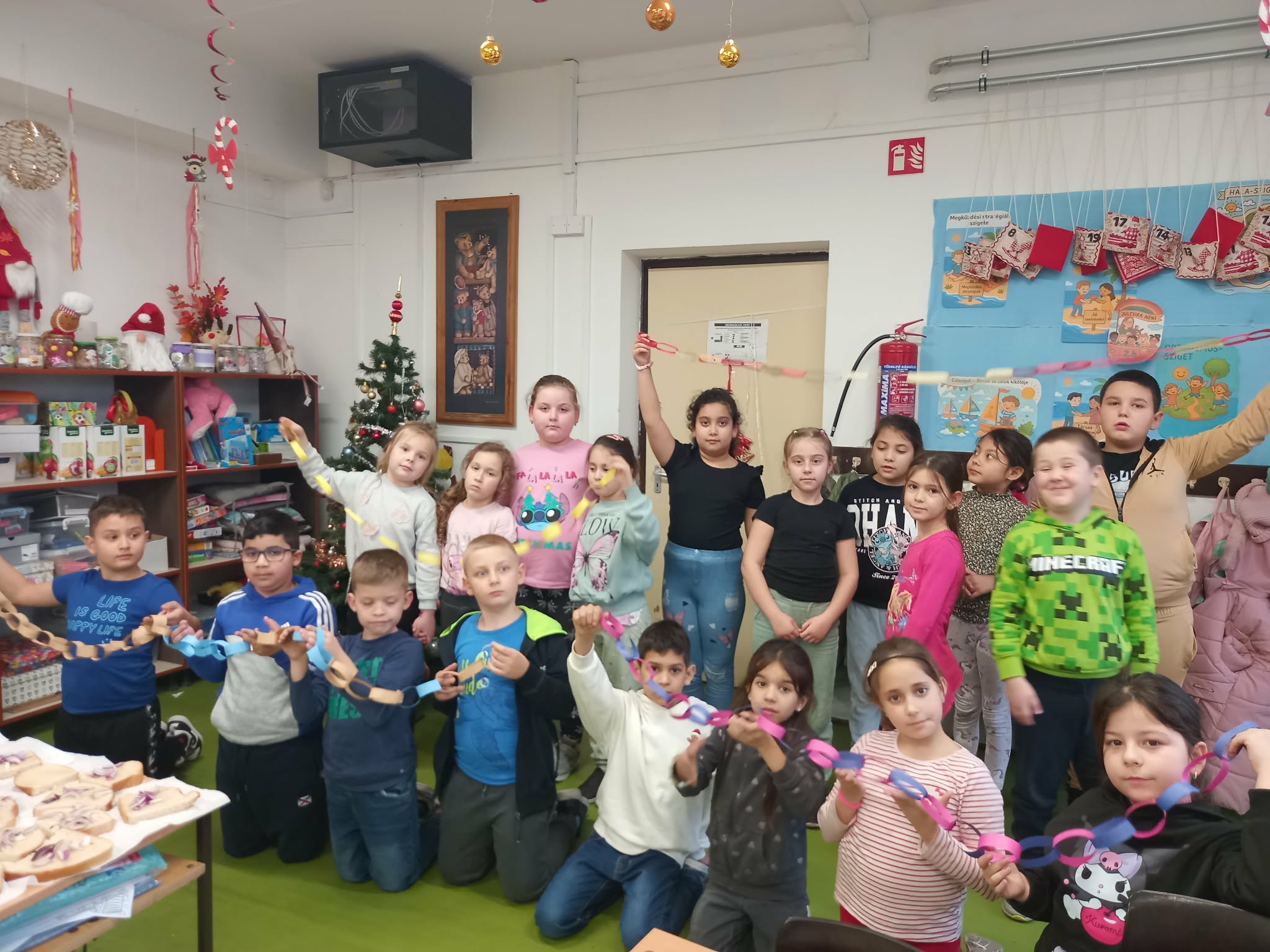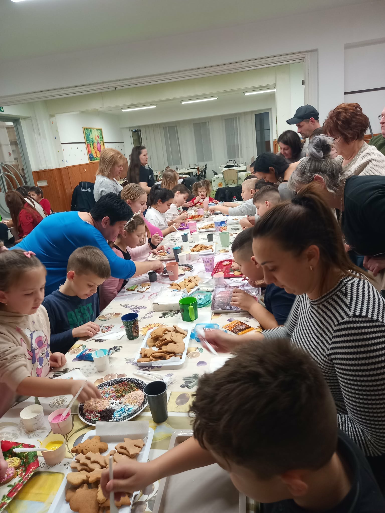 A Boldogságóra Boldogító jó cselekedetek témáját olyan élményekkel dolgoztuk fel, amelyek egyszerre erősítették az empátiát, az összetartozás érzését és a közösséghez tartozást. A foglalkozások során a gyerekek színezhető motívumokon keresztül ismerkedtek meg a jóság mindennapi formáival, miközben természetes módon beszélgettek az odafigyelés és a kedvesség fontosságáról. Az órán beszélgettünk arról, mit jelent számunkra a boldogító jó cselekedet: hogyan tudunk apró tettekkel örömet szerezni másoknak, és hogyan hat ránk, amikor mi magunk teszünk jót. A ráhangolódást a „Ha boldog vagy, mutasd meg mindenkinek” című Bagdi Bella-dal meghallgatása segítette, amely vidám hangulatot teremtett és megnyitotta a gyerekek szívét az együttműködésre. A foglalkozások során jóságláncot készítettünk, amelynek minden láncszeme egy-egy jócselekedetet jelképezett, amire saját gondolatukat írták rá. A közösen elkészült jóságláncot az iskola fájára helyeztük ki, hogy minden arra járót emlékeztessen arra: az apró kedvességek is összekapcsolnak bennünket. A lánc láthatóvá tette a gyerekek jó szándékát, és büszkeséggel töltötte el őket, hogy jóságukkal a tágabb közösségnek is üzenhetnek. Büszkék voltak a gyerekek, hogy az ő munkájukkal díszíthettük fel a fát. A program egyik kiemelt eseménye a szülőkkel közös mézeskalács-díszítés volt, ahol a közös alkotás valódi közösségi élménnyé vált. A gyerekekkel megbeszéltük, hogy az elkészült mézeskalácsok közül egy-egy darabot félreteszünk, és egy kiválasztott személynek adjuk át kedves gondolattal vagy jókívánsággal. Így a díszítés maga is boldogító jó cselekedetté vált.
