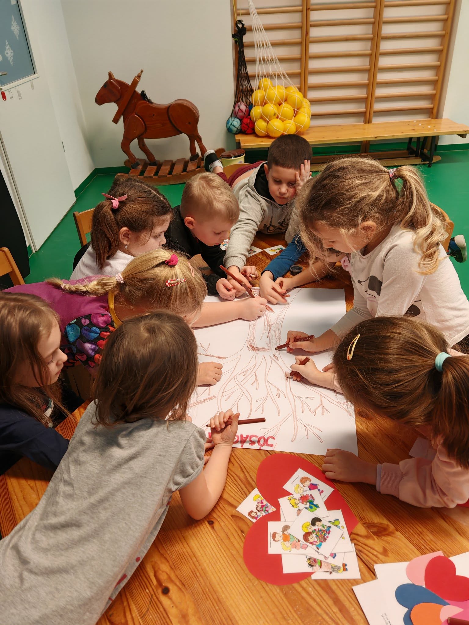 A mese után mi is megkerestük közösen a bennünk lakó jóságot. Mindenki mesélt valami jócselekedetéről, amiért egy színes szívecskét kapott.