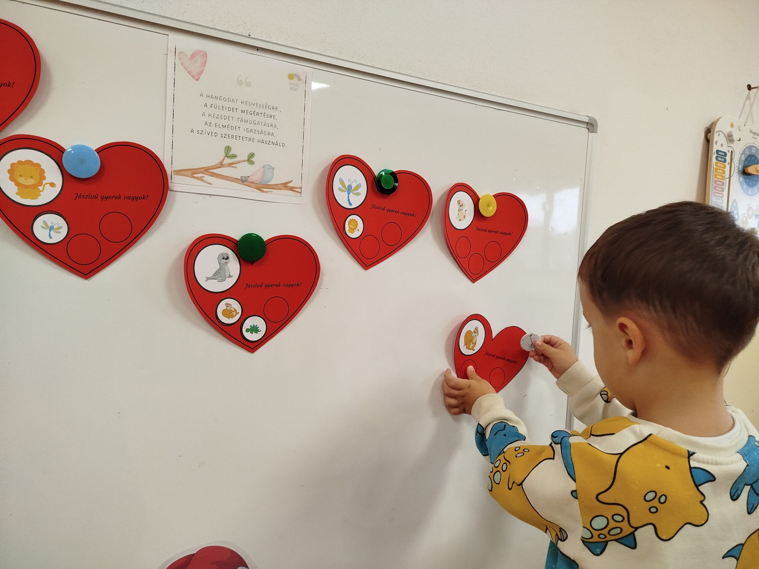 Jóérzéssel töltött el bennünket, hogy a nap végére egy igazán jószívű csoport lettünk, hisz mindenkinek sikerült legalább három társával jót cselekedni: „előre engedtem a sorban”, „kölcsönadtam neki a piros cukormázat”, „segítettem neki vizat tölteni”, „átadtam a helyem az ebédlőben”…