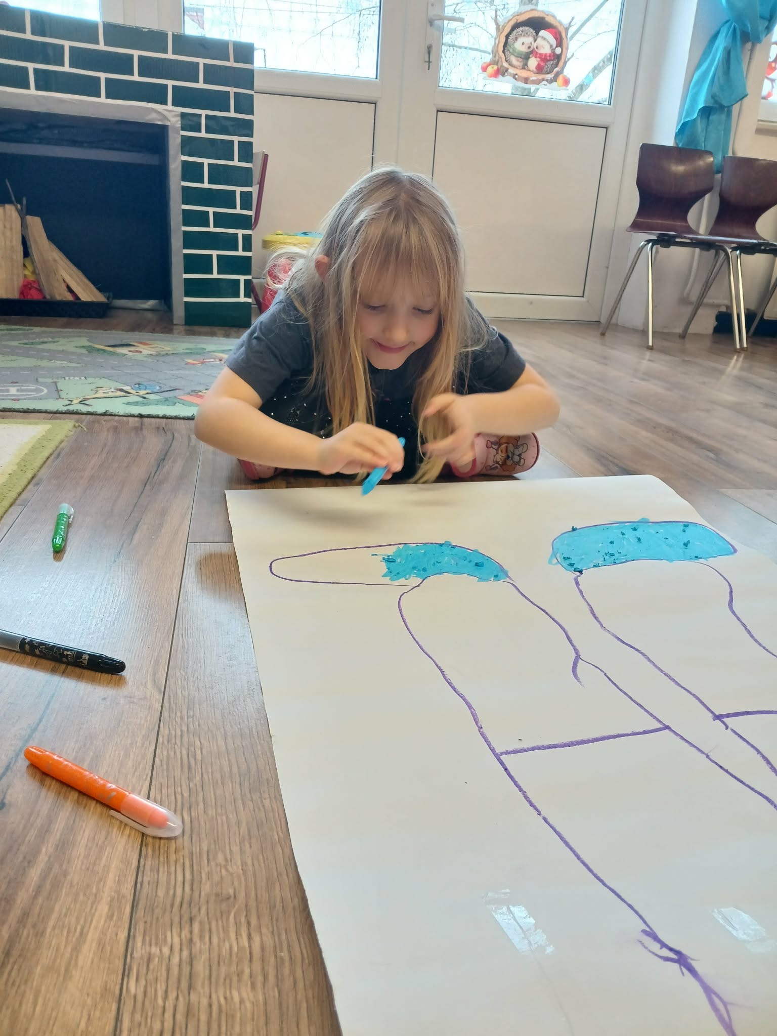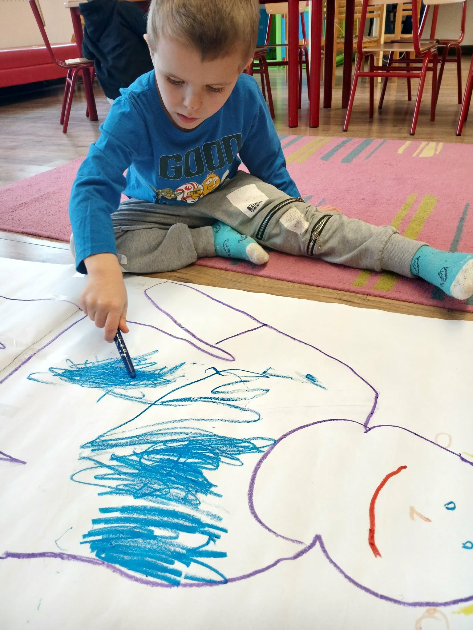 Ebben a hónapban a fő témánk a jószívűség volt. A gyerekekkel elkészítettük a jószívűség angyalát (körberajzolták egyik kis társukat), majd kiszíneztük. Ő lett a csoport kabalása, róla veszünk példát, milyen jócselekedeteket kell majd csinálnunk és hogyan tehetünk boldoggá másokat. Elmeséltem nekik, hogy én idén milyen jó cselekedetet hajtottam végre, majd velük is próbáltunk néhányat keresni.