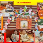 A zoknikat megszámoztuk, szépen sorban felfűztük a kandalló fölé. Meglepetésképpen a zoknik belső oldalára üzeneteket helyeztem el. Ezzel elkészítettük a csoport adventi naptárát. A téli szünet kezdetéig az üzenetek minden napra egy-egy kihívást tartogattak a csoport számára. Rendkívül lelkesek, izgatottak voltak. Az aznapi kihívást „Meglepetések napja” felolvastuk, majd rögtön végre is hajtottuk. „Készíts egy angyalt, majd rejtsd el egy első osztályos kabátjában”