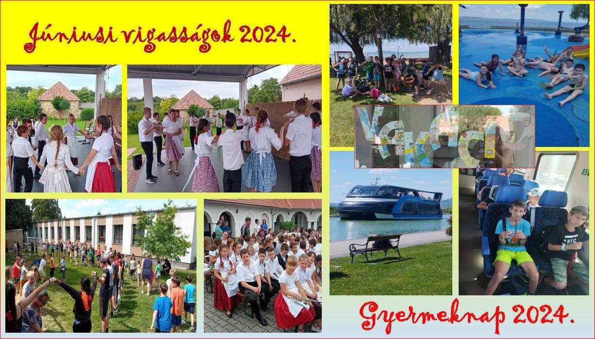 Június 18-án került sor a rossz idő miatt májusban elmaradt gyermeknapi programunk (SZM ajándék) megvalósítására is: iskolánk összes tanulója Badacsonyba utazott vonattal, majd hajóval tovább mentünk Fonyódra, ahol mindenki kedvére tölthette el osztályonként a szabad idejét strandolással, játszótéri játékokkal. A művelődési házban is jártunk, ahol izgalmas kvíz-vetélkedőn vettünk részt, rajzolhattunk az aszfaltra, néprajzi- és hungaricum-kiállításon vettünk részt. Nagy sikert aratott a „mezítlábas mendegélős” játék, ahol különféle nagyságú és minőségű kavicsokon, faforgácson, homokon lehetett kipróbálni talpunk érzékelési képességét.