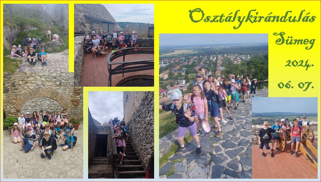 Önbizalmunk növelése érdekében a „Hegymászó légzőgyakorlat”-tal melegítettünk be és edzettük tüdőnket a túrázásokhoz, kirándulásokhoz. Szükség is volt rá, hiszen osztálykirándulásunk fő állomásaként, Sümegen a várhoz felfelé vezető út bizony elég meredeknek bizonyult. Fenn a várban is rengeteg lépcsőt megmásztunk, sokat sétáltunk a falak között, közben ismerkedtünk a hely történelmi vonatkozásaival, majd a lovagi torna közel 1 órás műsora koronázta meg programunkat. Boldogságunk fenntartásához pedig a finom gyümölcsös fagylalt járult hozzá, amit minden tanuló szívesen fogyasztott, hiszen májusban a „fagylalt napján” tett ígéretünknek tettünk eleget ezzel.