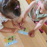 A témahét első napján bevezetésként kifestőket adtam a gyerekeknek; a mese szereplőit készíthették el felületfestéssel. A színeket maguk választhatták meg, így igazán mesebeli szereplők készültek.