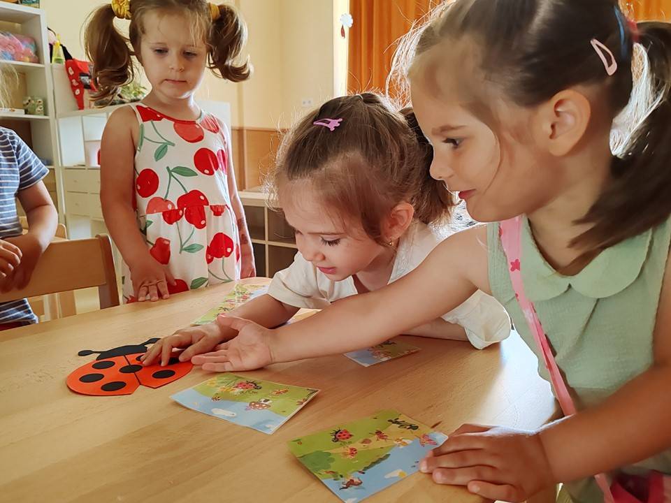 A témahetet katicás mondókákkal és énekekkel zártuk. A gyerekek nagyon szeretik Gryllus: Katicabogár c. dalát gitárkisérettel hallgatni.
