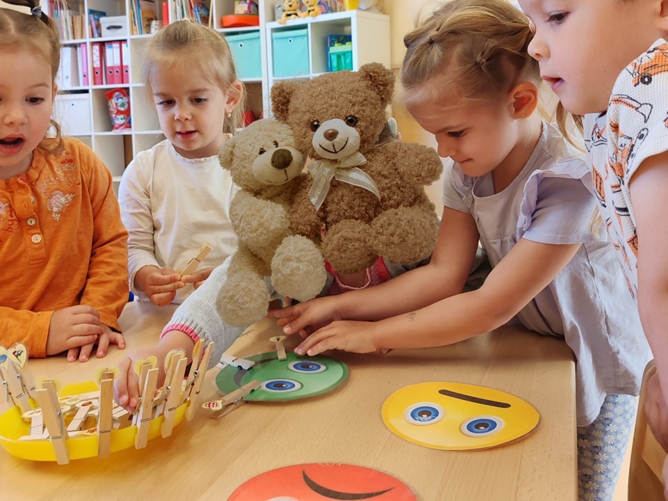 Előzményként a színek felismerésével válogatásával foglalkoztunk, „gyűjtöttük” a színeket. Megelőző foglalkozáson már ismerkedtünk az alapérzelmek külső jeleivel: Megpróbáltuk egymás arckifejezéséből kitalálni, vajon milyen kedve lehet a társunknak. További segítséget jelent, hogy már egy ideje használjuk a hangulatmérőt, amivel minden alkalommal a saját aktuális érzelmeiket határozták meg a gyerekek.