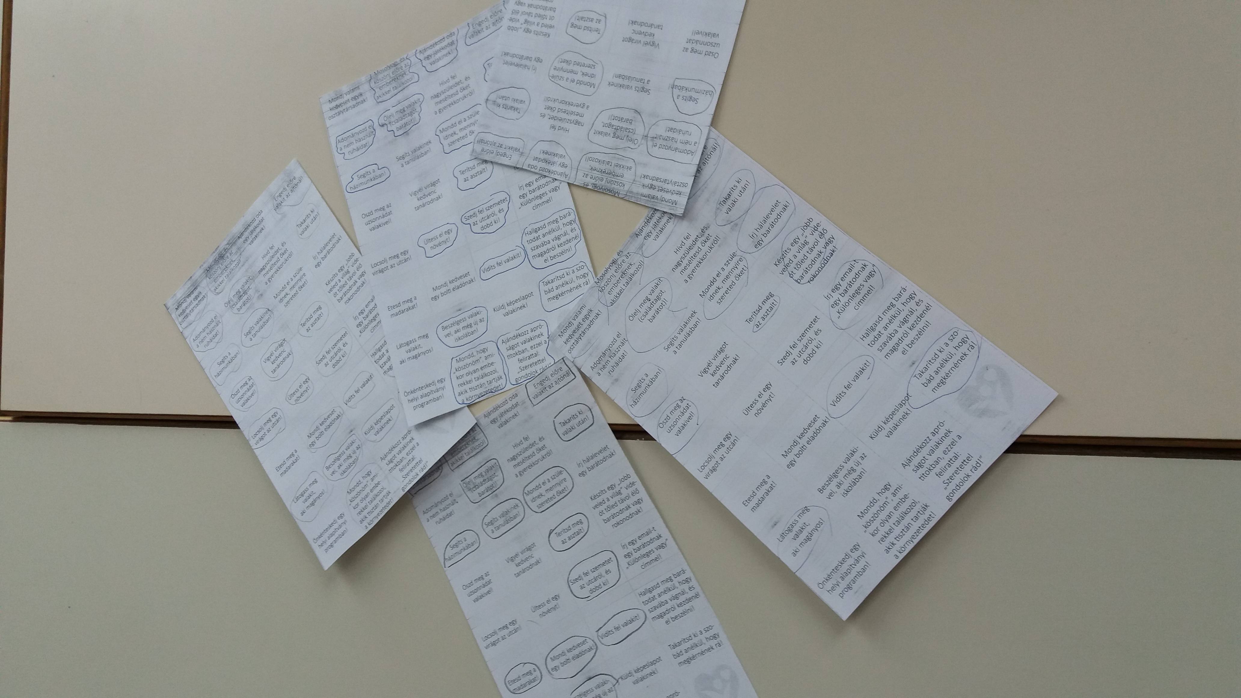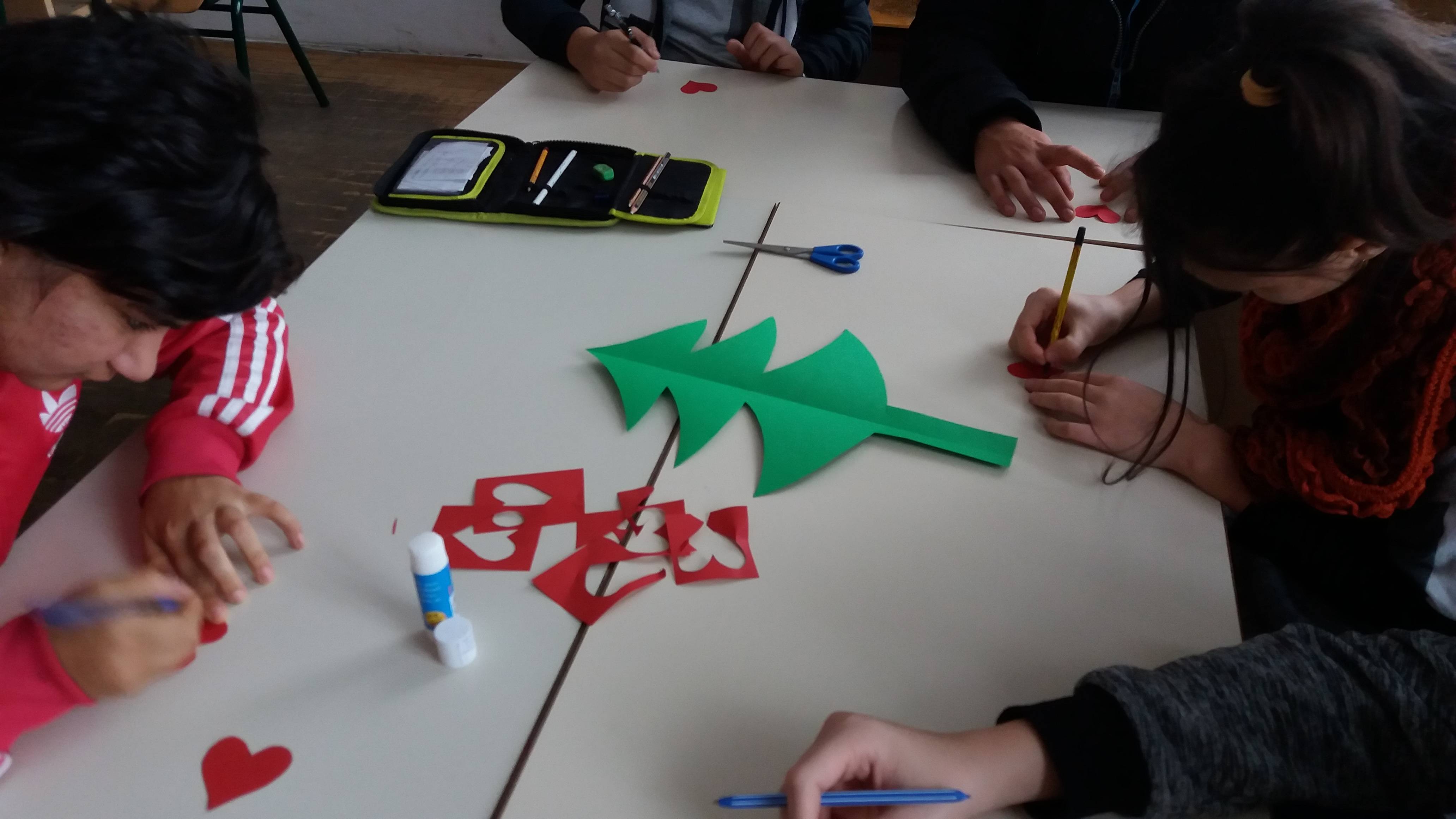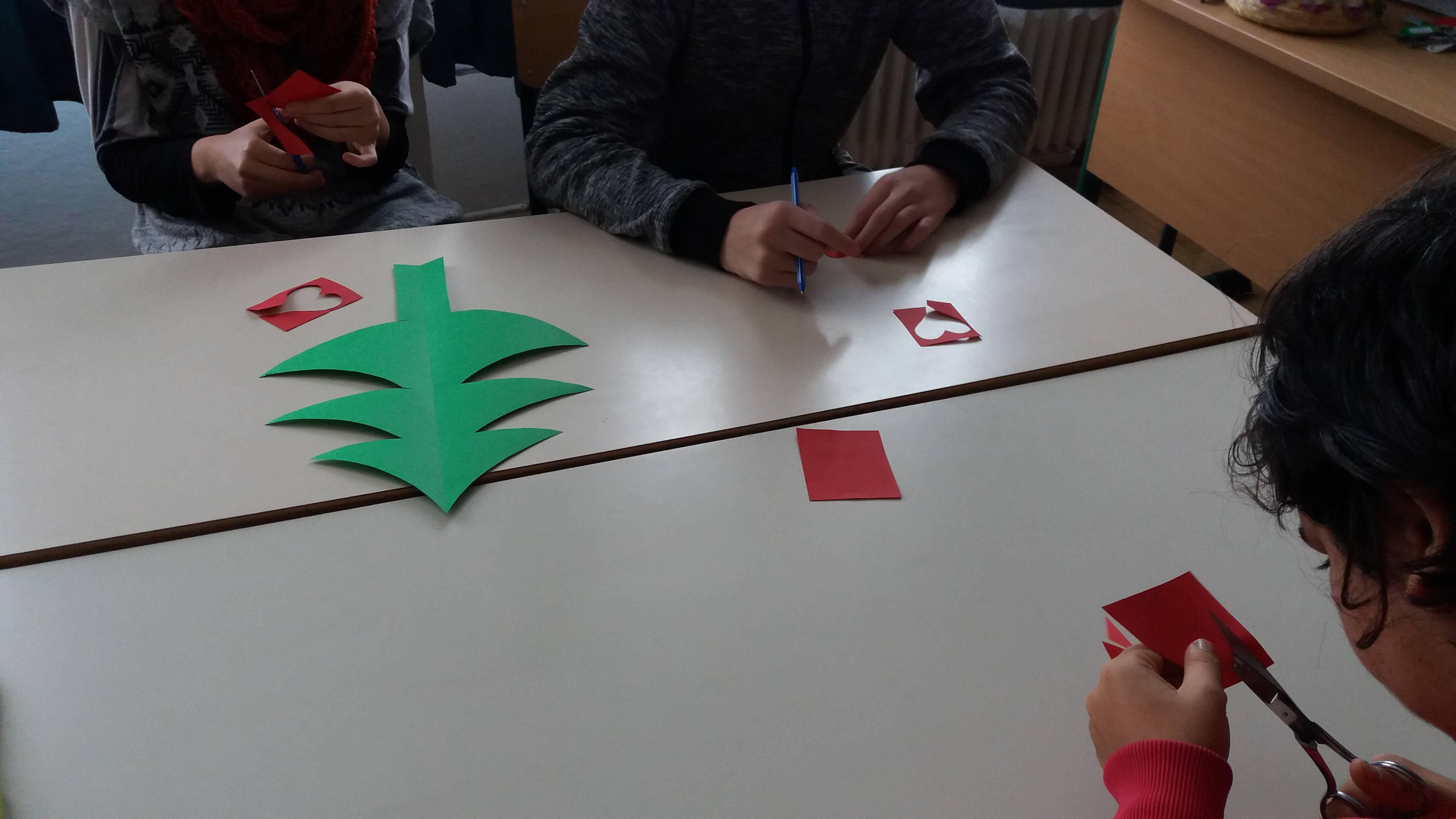 Sokat beszéltük arról, hogy miért jobb adni, mint kapni. Majd felelevenítettük, hogy ki és milyen jó tettet próbált ki decemberben. Ezeket bejelöltük a 31 napos jó cselekedet kihívás listán. Ezután szívecskéket vágtunk ki, amikre pozitív üzeneteket írtunk egymásnak. Ezekből mindenki egyet kiválasztott és felragasztotta a papír fenyőfánkra.