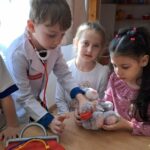 A hónap során a farsangolás mellett feldolgoztunk az egészség, betegség témáját is. Sokat hangsúlyozzuk, hogy az egészséges életmód, a testi lelki egészség fontosságát a gyerekeknek . Játékos feladatokkal megtanítjuk nekik ezt az egyensúlyt fenntartani. A mindennapjaink során nagyon sok megküzdéses helyzettel nézünk szembe.A stressz kezelésére légzőgyakorlatokat, az „Ellazulni jaj” dalt is beépítettem a tevékenységekbe. Nagyon sok olyan gyermekkel találkozok, akinél jól tudom alkalmazni ezt a módszert. A Betegség világnapja alkalmából Doktoros játékot is végeztünk, ahol a gyerekek beleélhették magukat azokban a szituációkban, amit egy beteg gyermek érez. Azonosulhattak vele, a törődés, bátorító szavak gyakorlásával kialakulhattak az empatikus képességek. Beleilleszkedhettek az orvos szerepébe, ami segíthetett megérteni,elfogadni azt a folyamatot, amit az orvosi feladatok jelentenek. Így bátorságot kaphattak. Azt a stresszt,amit egy-egy ilyen alkalommal átélnek pozitív energiává is alakíthatják.