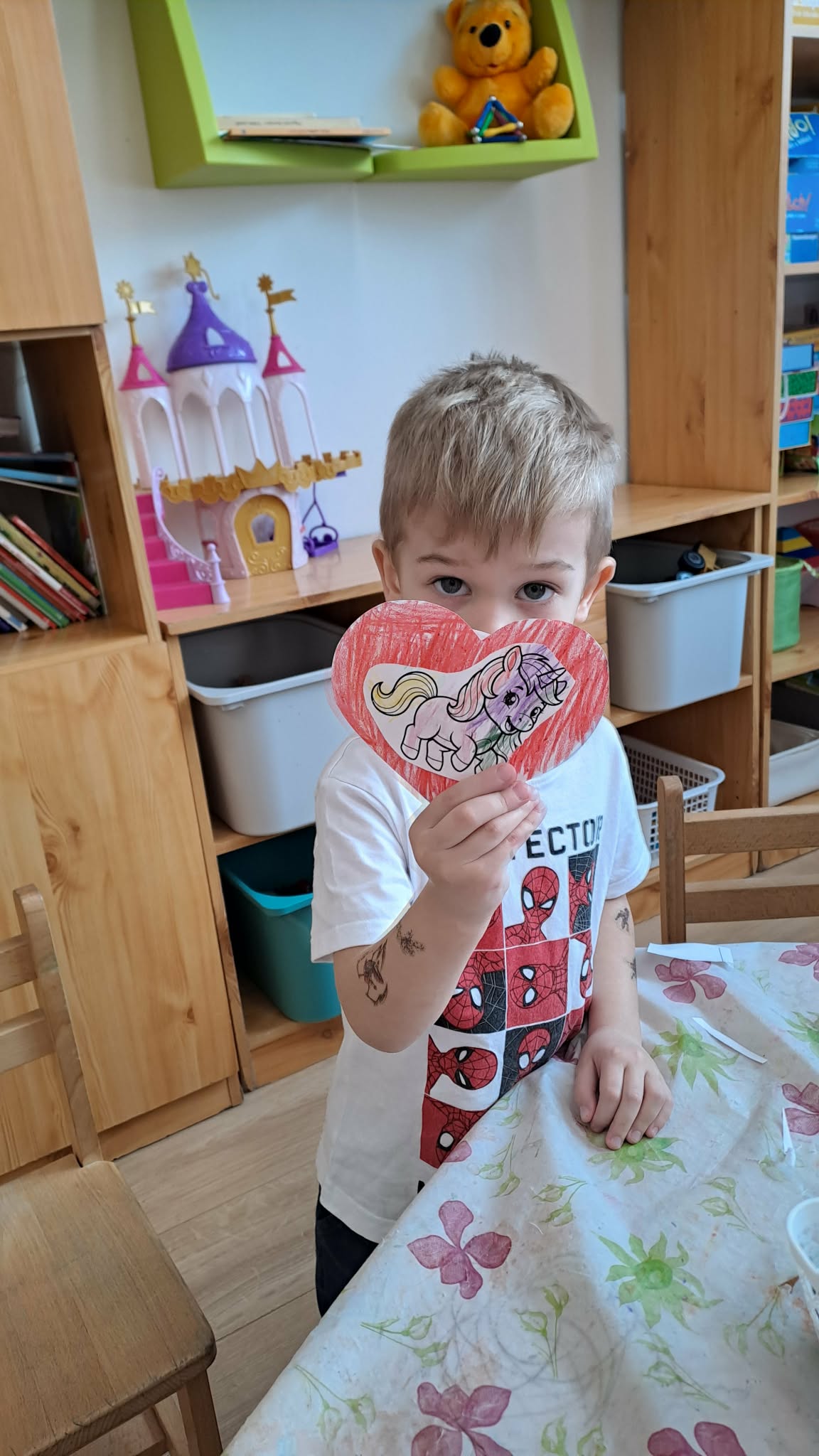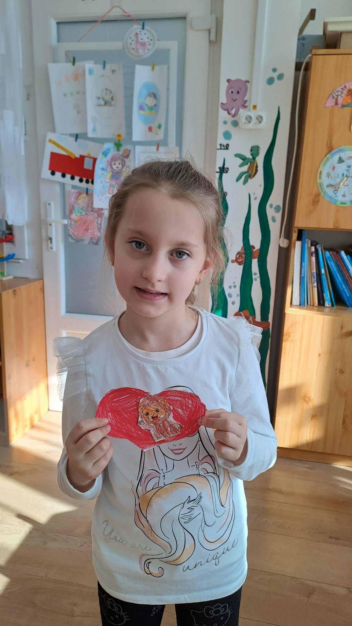 Valentin napkor tovább folytattuk a témát, bátorság szíveket készítettünk. Beszélgetőkör során a gyerekek beszámoltak arról, hogy ki, melyik képet választja, ha bátorításra lenne szüksége. Példákat hoztam fel, hogy milyen események, helyzetek során alkalmazhatjuk azokat. Elmondtam, hogy ez az ünnep lehetőséget ad, hogy a barátunknak is ajándékozzunk ilyen szíveskét. A gyerekek boldogan válogattak a képek közül és meglepően okosan fogalmazták meg gondolataikat. Volt, aki beteg testvérének készített bátorság szívecskét, hogy ne féljen a szuritól.