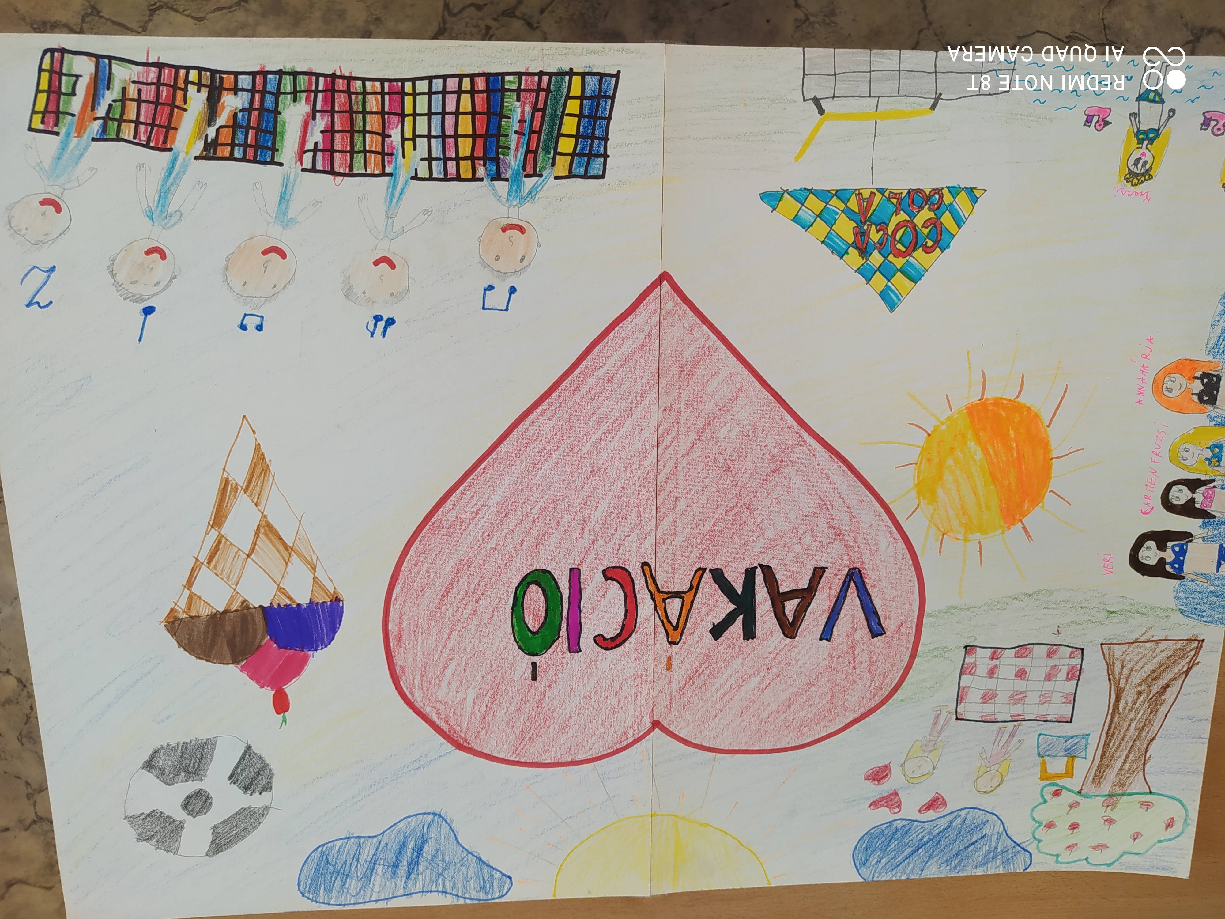 A foglalkozást a munkafüzetben található színezővel kezdtük. Ezt követően felidéztük közösen az elmúlt hónapok eseményeit. Felidéztük az egyes foglakozások alkalmával tanultakat, hogyan tudjuk használni az egyes boldogságfokozó technikákat a mindennapokban. Osztályunk tanulóinak nagyon fontos a társaik támogatása, az együtt tevékenykedés, közös munka. Az év lezárásaként egy közös munka készült ismét a vakációra hangolódva. Közben Bagdi Bella: Jobb veled a világ c. dalát hallgattuk meg.