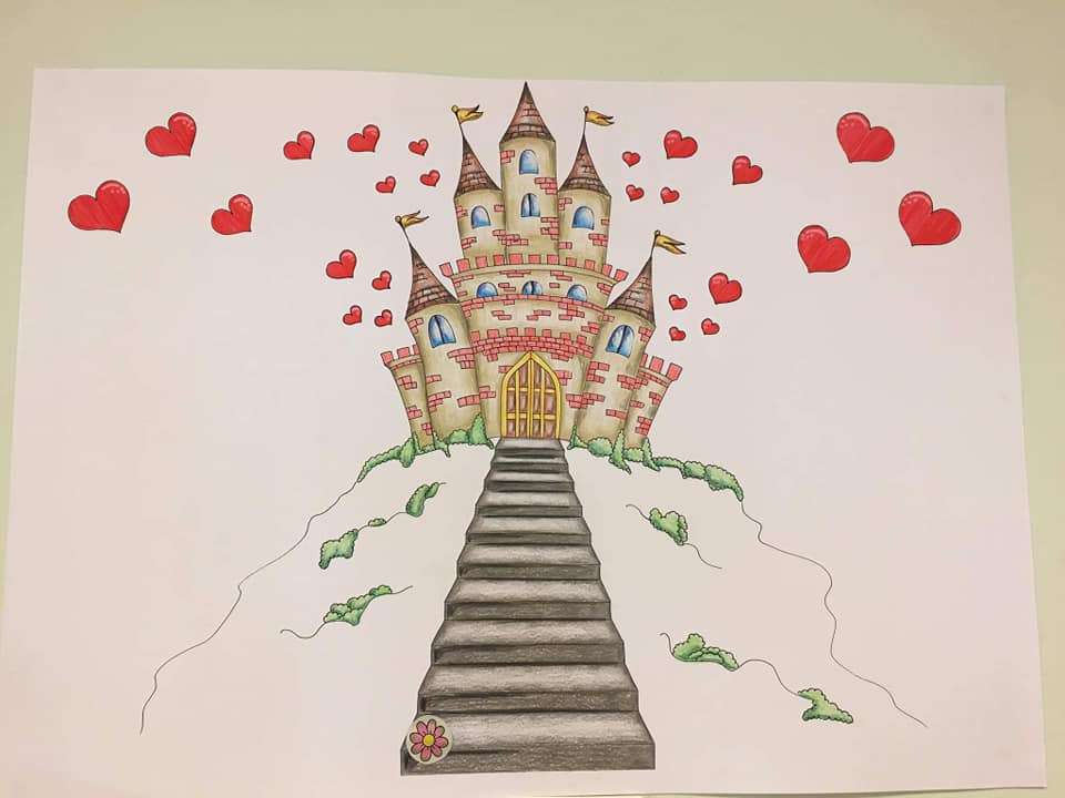 Ezután a Boldogság Várának elképzelésével folytattuk, közösen megbeszélve, ki milyen várat látott maga előtt. A gyermekek szabadjára engedték fantáziájukat, és csodás ötletek születtek. Megnéztük a Montessori csoport közös Boldogságvárát is.