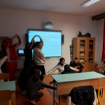 Ma a Boldogságórán a magyar opera napjához kapcsolódva megnéztük Kacsóh Pongrác: János vitéz című daljátékának egy részletét az Erkel Operastúdió előadásából. A tanulók először csukott szemmel hallgatták, majd eljátszották azt a jelenetet, amikor Iluska a patakban mossa a ruháját, János pedig szólongatja őt.