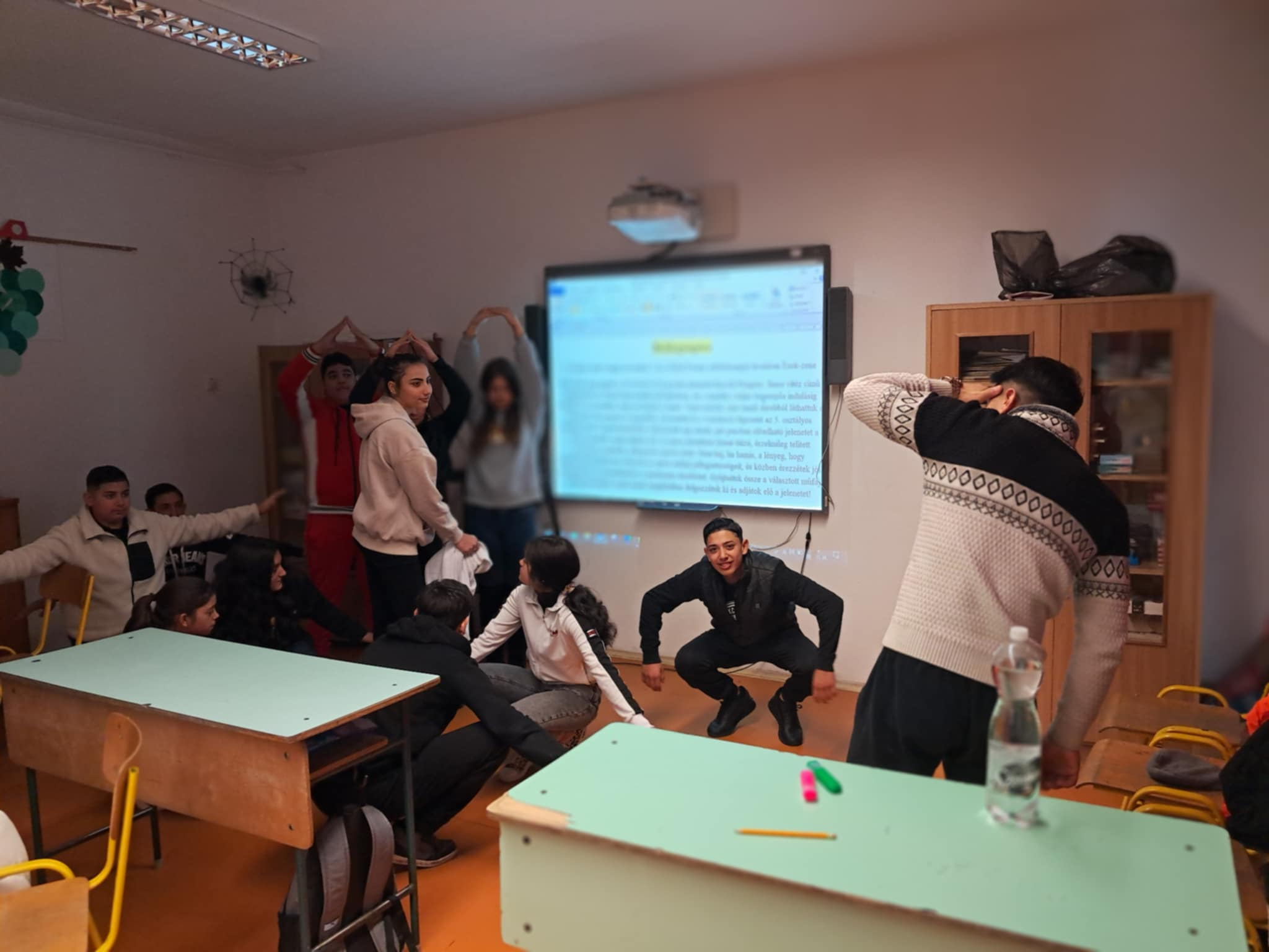 Ma a Boldogságórán a magyar opera napjához kapcsolódva megnéztük Kacsóh Pongrác: János vitéz című daljátékának egy részletét az Erkel Operastúdió előadásából. A tanulók először csukott szemmel hallgatták, majd eljátszották azt a jelenetet, amikor Iluska a patakban mossa a ruháját, János pedig szólongatja őt.