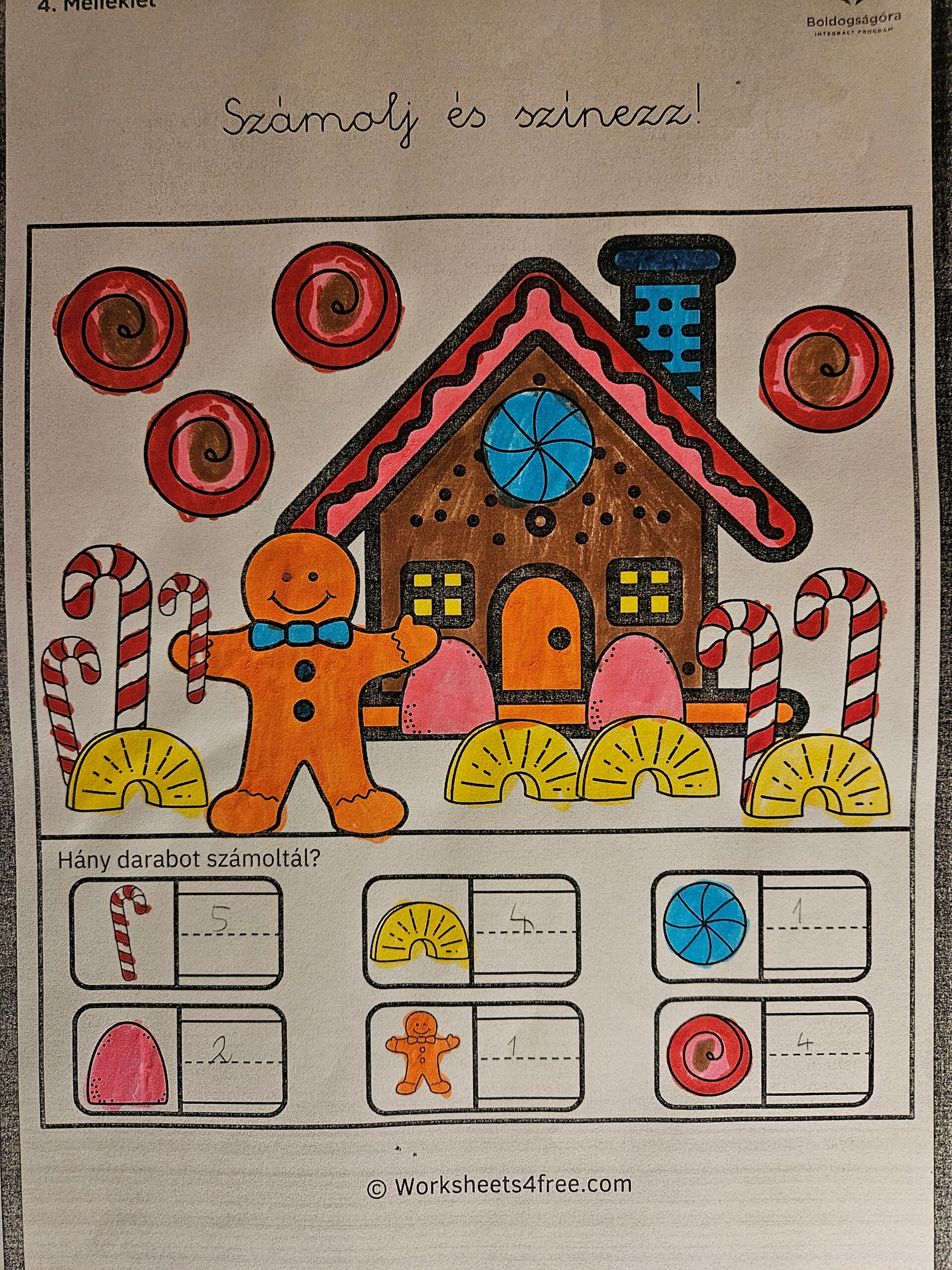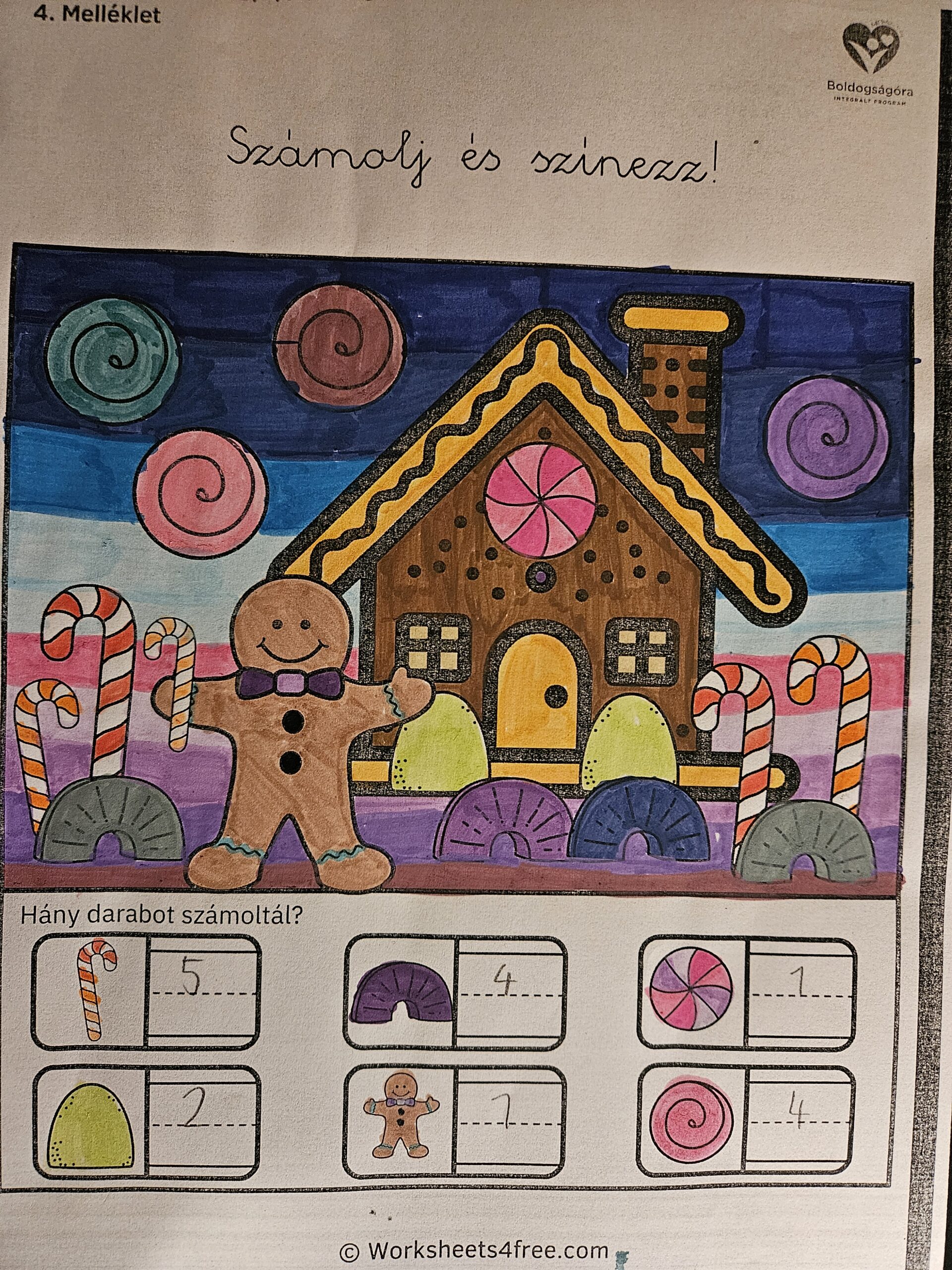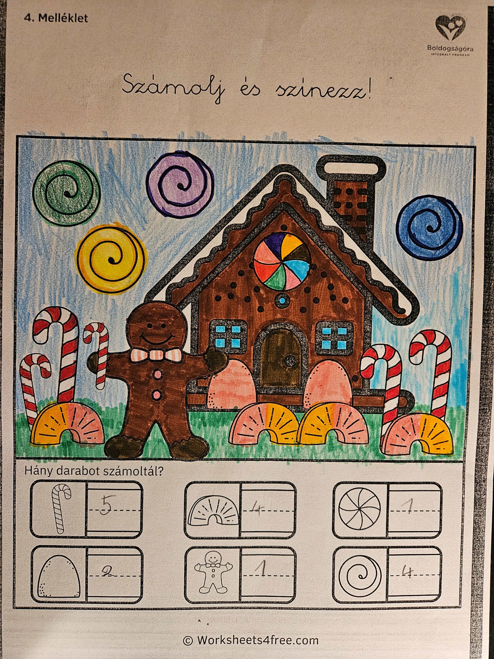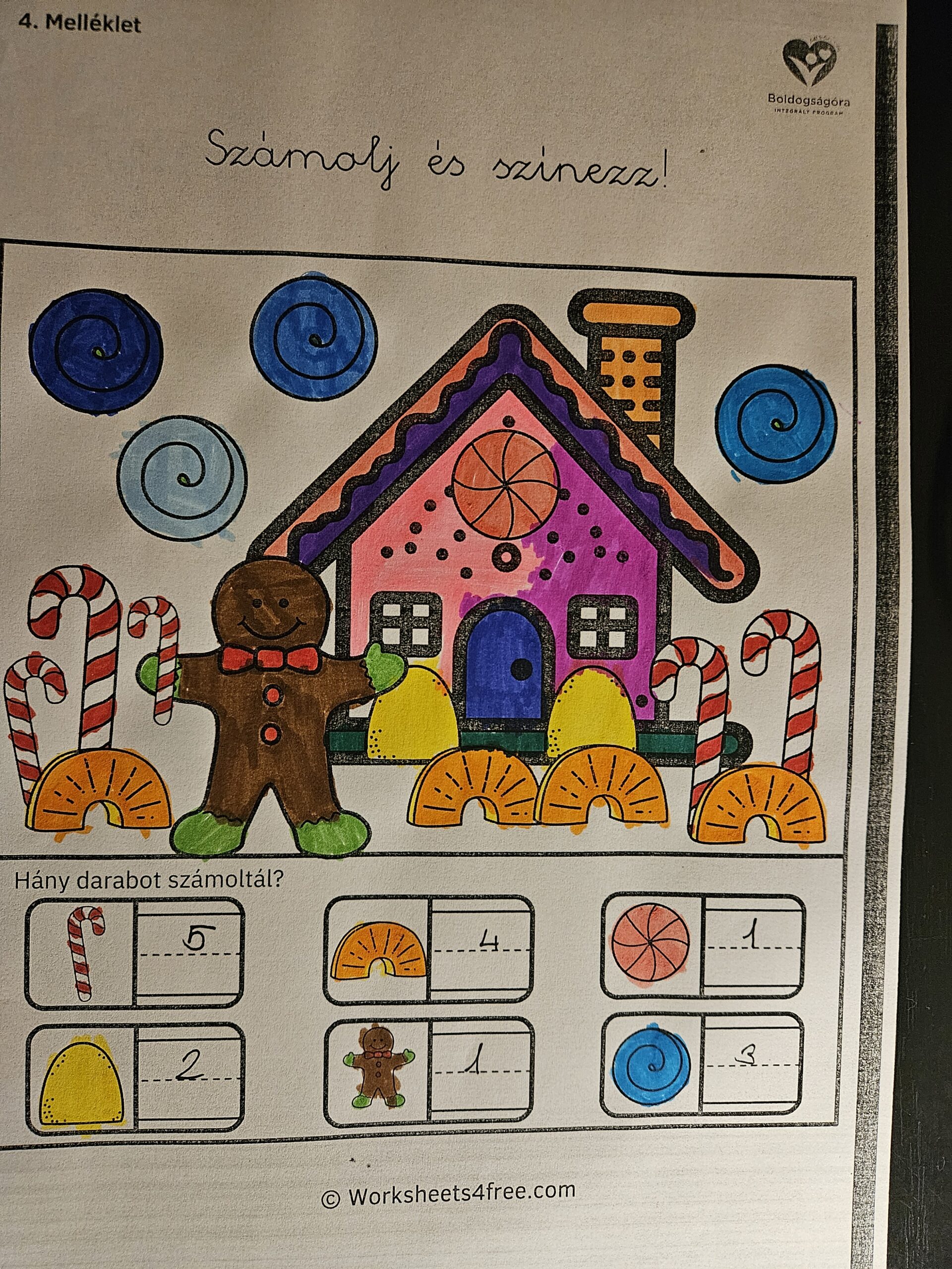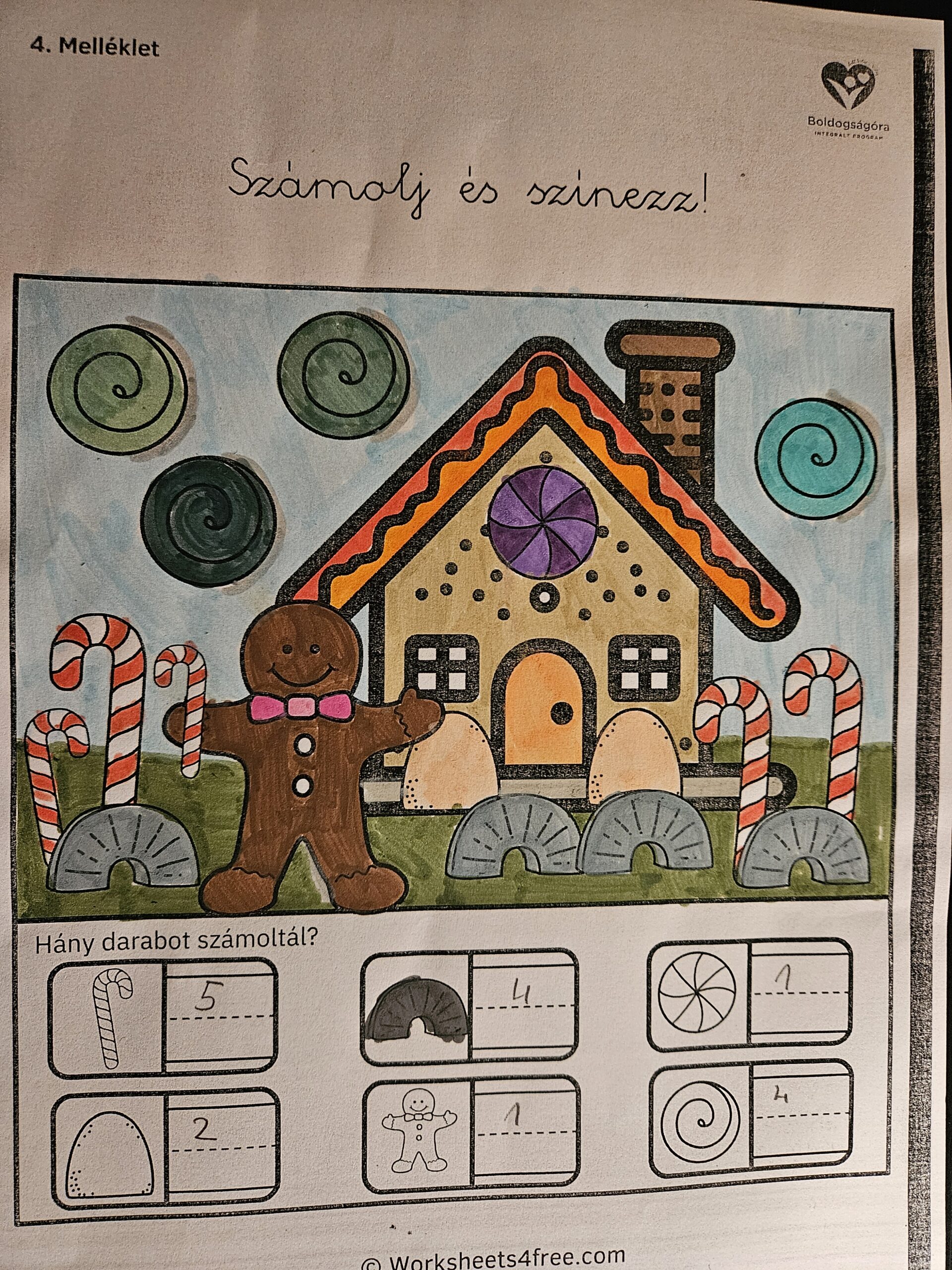 A tanulókkal meghallgattuk a meditációs szövegeket és a dalokat. Ezt követően felolvastam „A másik Télapó” című szemelvényt, majd a kérdések alapján beszéltünk a történetről, illetve a gyerekek elmondták kapcsolódó gondolataikat. A képek színezésével zártuk a foglalkozást, ezalatt meditációs zene szólt.