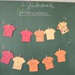 A második boldogságóránk témája „Az optimizmus gyakorlása” volt, amit a 11.F-es csoportommal német órán dolgoztunk fel. Miután egy szórejtvény segítségével megfejtették az óra témáját („Optimismus”), közösen felolvastunk és lefordítottunk néhány idézetet a pozitív gondolkodásról. Az óra további részében a tanulók pármunkában optimista/pozitív szavakat gyűjtöttek, majd néhány mondatot kellett pozitívan befejezniük (pl.: Ma 8 órám van, de…). Végezetül mindenki megalkotta a saját tervezésű optimista pólóját. Minden pólóra rákerült egy-egy bátorító mondat németül (pl.: Fel a fejjel! Gondolkodj pozitívan!).