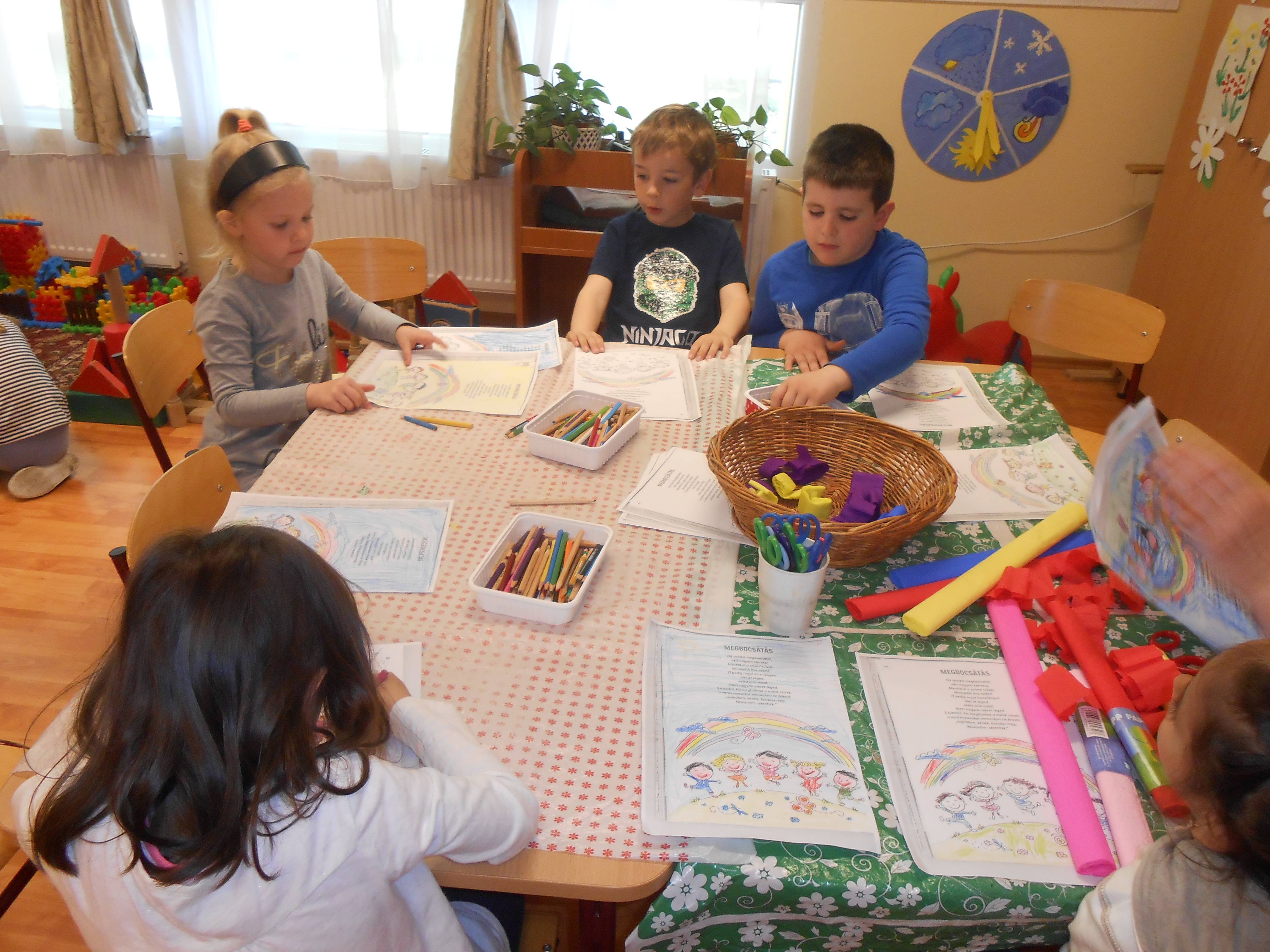 Mit érzek, ha haragszom, vagí ha megbocsájtanak? A mimetikus játékot is szívesen játszották a gyermekek. Ehhez kapcsolódott a Szivárványországba történő utazás, és a szivárványtáncunk.