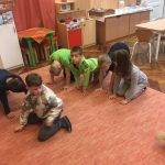 A foglalkozást relaxációs gyakorlattal kezdtük. A haragom kifújom, mint a cica nyújtózom: a mondókára tele tüdőt hallható fújással ürítjük ki, közben a szőnyegen előre kúszunk a törzsünkkel.