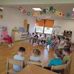 Ezt követően eljátszottuk ,,Esik eső, süt a nap, Paprika Jancsi mosogat” kezdetű mozgással kísért mondókát.